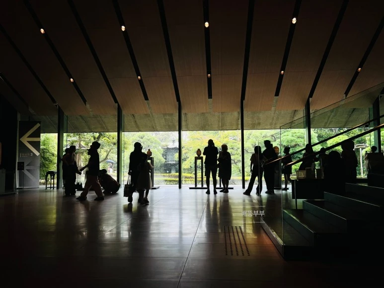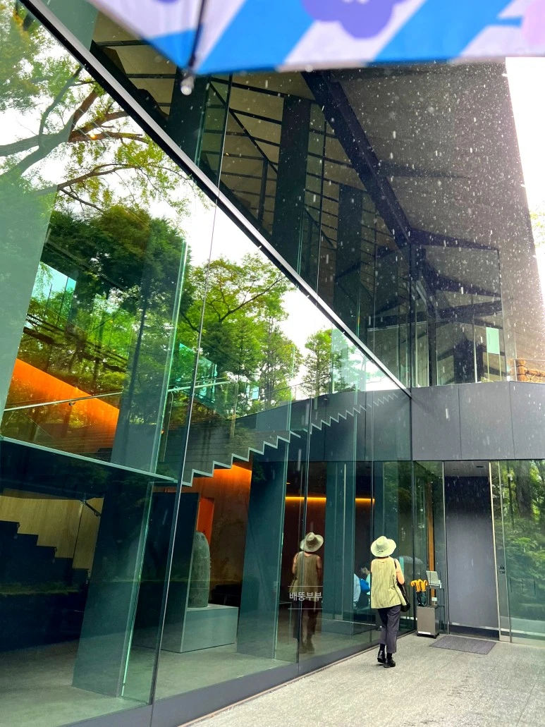 통유리창은 바로 2009년에 개관한 재건 건조물의 가치를 한껏 올려주고 있다. 구마 겐고(隈 研吾)라는 건축가의 작품이라고 하는데, 전통적인 예술에서 근대 일본 건축과 정원까지 탁월한 조화를 이루어준 것 같다. 그는 이 뮤지엄의 재건을 위해, 철도 재벌이자 명문가였던