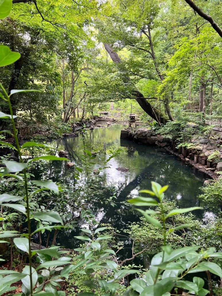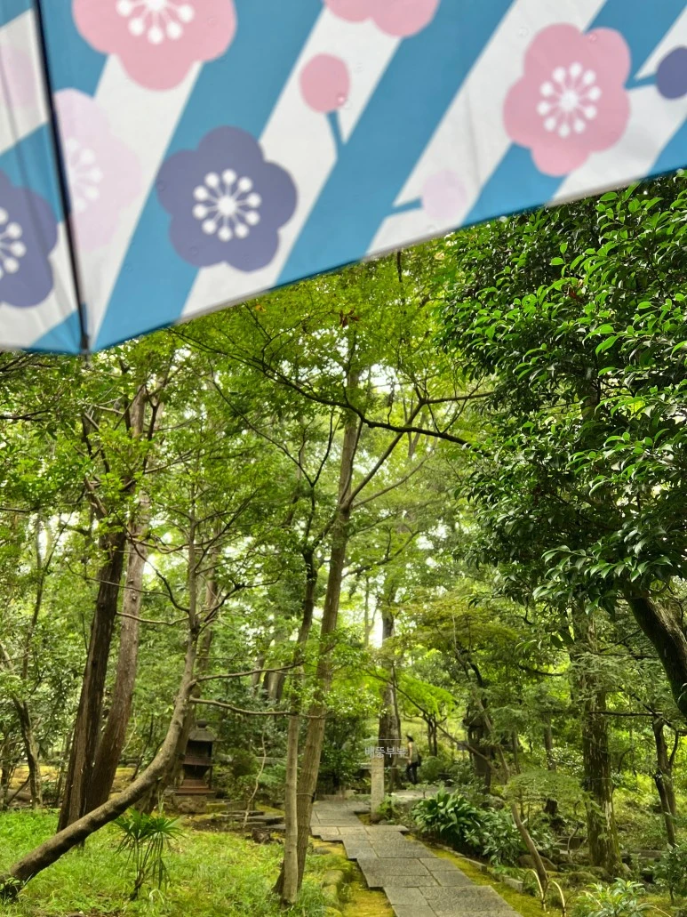 미술관 정원에 숲속의 카페는 만석이어서 아쉽게도 들어가지 않고 정원을 돌아보았다. 사실 이 미술관 카페가 정말 유명한데 말이다. 여하튼 비가 내리는 정원은 마치 한 폭의 그림 같았다. 연못, 개울, 다실, 그리고 오솔길 이어지는 자연 그 자체 속에서 우리는 무심코 천천히 걸어보았다. 신주쿠 교엔 땅은 드넓다고 광대하다고 표현할 수 있고, 네즈 미술관의 정원 땅은 작은 풍요로움 같다고 표현할 수 있을 것 같다. 때마침 이때에 비가 내려줌이 기가 막힌 하늘의 솜씨라는 생각이 들었다. 비가 내린다며 얼른 비를 피해야한다는 생각이 전혀 들지 않았다. 빗방울 소리와 함께 깨달음과 명상의 시간을 가졌다. 반갑다. 비야.