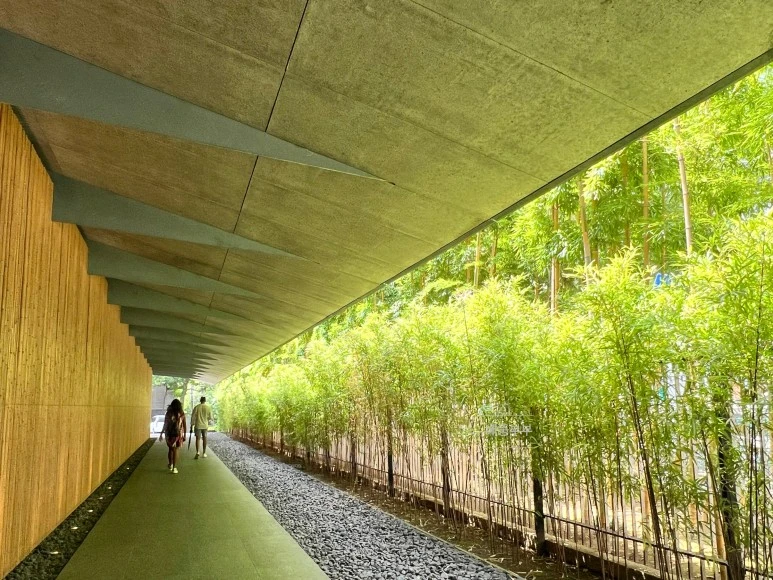 입구에서부터 시작되는 아름다움은 마치 하나의 흐르는 멜로디처럼 우리를 사로잡았다. 조화로운 그린 벨벳의 색채, 깔끔한 공간 구성, 정교한 디테일, 그리고 무엇보다도 고즈넉한 분위기 속에서 전통적인 예술과 근대 일본 건축이 완벽하게 어우러져 있었다.