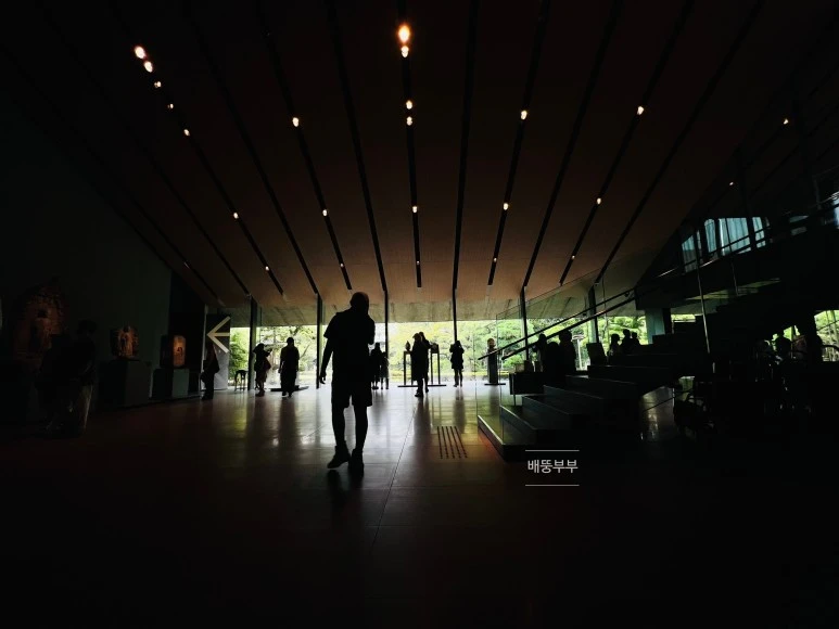 입구 홀 정면에 중국 북제의 여래 입상과 간다라 시대의 미를 보살 입상이 있는데, 관심을 줄 새도 없이 정원으로 시선이 갔다. 전시관 내부에는 다양한 동양 고미술품들이 전시되어 있었지만, 사진촬영이 불가하였다.