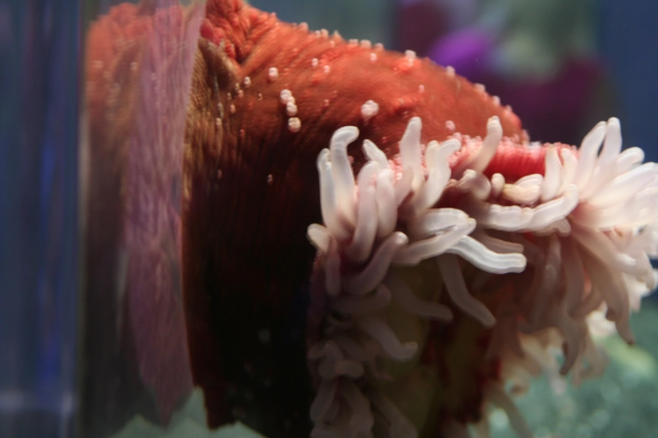 해마는 골똘히 생각에 잠겨 있었다. 직각의 목과 날카로운 가시, 긴 주둥이, 그리고 까다로운 듯한(?) 평화로운 듯한(?) 꿈을 꾸는 듯한(?) 표정 아닌 표정을 보여주며 말이다. 나는 붕 떠 있는 해마를 유리창 너머로 바라보았다. 그의 수중 세계는 가히 맑고 고독하며 신비로웠다. 해마는 물속에서 굴절된 빛과 그림자, 그리고 흐느적거리는 녹말 이쑤시개 같은 풀에 희미하게 둘러싸여 있었다. 해마는 그야말로 누군가의 손에 의해 잘 조절된 조명을 받고 있는 주연감이었다. 나는 곧이어 우르티시나 피시 보라 (물고기를 먹는 말미잘)를 만났고