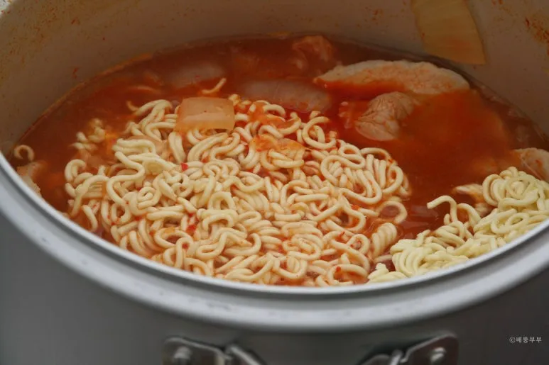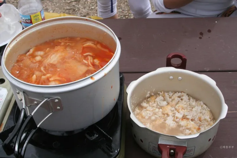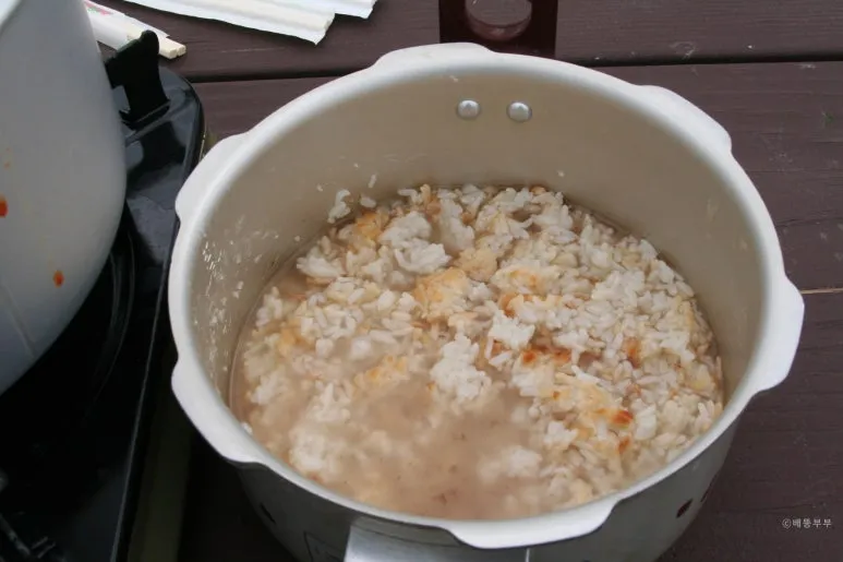 캠핑에 빠뜨릴 수 없는 신라면이다. 그리고 누릉지까지.