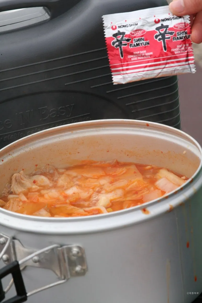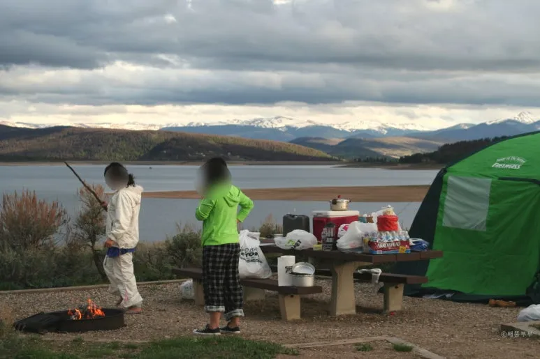 부대찌개? 김치찌개? 차가운 공기 속에서 찌개와 라면사리, 따뜻한 누룽지는 정말이지 특별했다. 미국 캠핑장에서 샐러드와 샌드위치가 아닌, 매콤하고 뜨거운 아침으로 시작을 한 것은 잘한 일이었다.