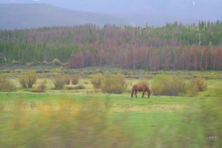 아라파호 밸리 목장 Arapaho Valley Ranch는 그랜비 호수 (Lake Granby) 근처에 위치하고 있으며, 보트 타기, 낚시, 하이킹 등 다양한 활동과 함께 캠핑장을 제공하고 있다. 한 마리의 말 덕분에 한층 더 쓸쓸하게 느껴지는 듯했으나 이 순간이 바로 그 순간이었다.