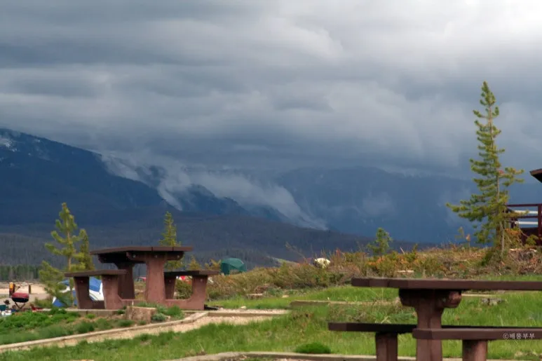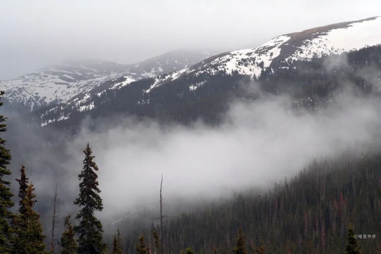 이제는 점차 익숙해지고 있었다. 자연 속에서 새로운 여정을 시작하는 기분은 여전히 설레었고, 배낭에 짐을 챙겨 넣는 일 또한 그러했다. 덴버에서 차로 2시간 거리에 위치한 그랜비 호수를 향해 달려갈 때, 그때를 기억한다. 콜로라도 주 자체가 광대했기에 호수 또한 그러했다. 콜로라도 주에서 세 번째로 큰 이 호수는, 해발 8,280피트에 자리한 거대한 수면이 매년 수많은 관광객을 맞이하는 명소였다. 보트 타기, 낚시, 하이킹 등 다양한 활동이 가능한 곳이다. 우리가 도착했을 때, 우리를 맞이한 풍경은 구름과 안개로 가득 찬 흐릿한 호수였지만, 나의 눈과 마음은 그저 맑음이었다. 맑은 날을 기대하지도 않았고, 흐린 날을 원한 것도 아니었기에, 그 불확실한 날씨마저도 자연 속에 풍덩 빠지는 기쁨이 있었다. 안개에 덮인 나무들, 그리고 산, 그 속에 감춰진 형상들이 보일 듯 말 듯. 그러한 정적인 풍경 속에서 나는 그랜비 호수에게 손을 내밀어보았다. 그토록 평온한 물결에, 흐릿한 회색빛까지. 그 자체로 완벽했다.
