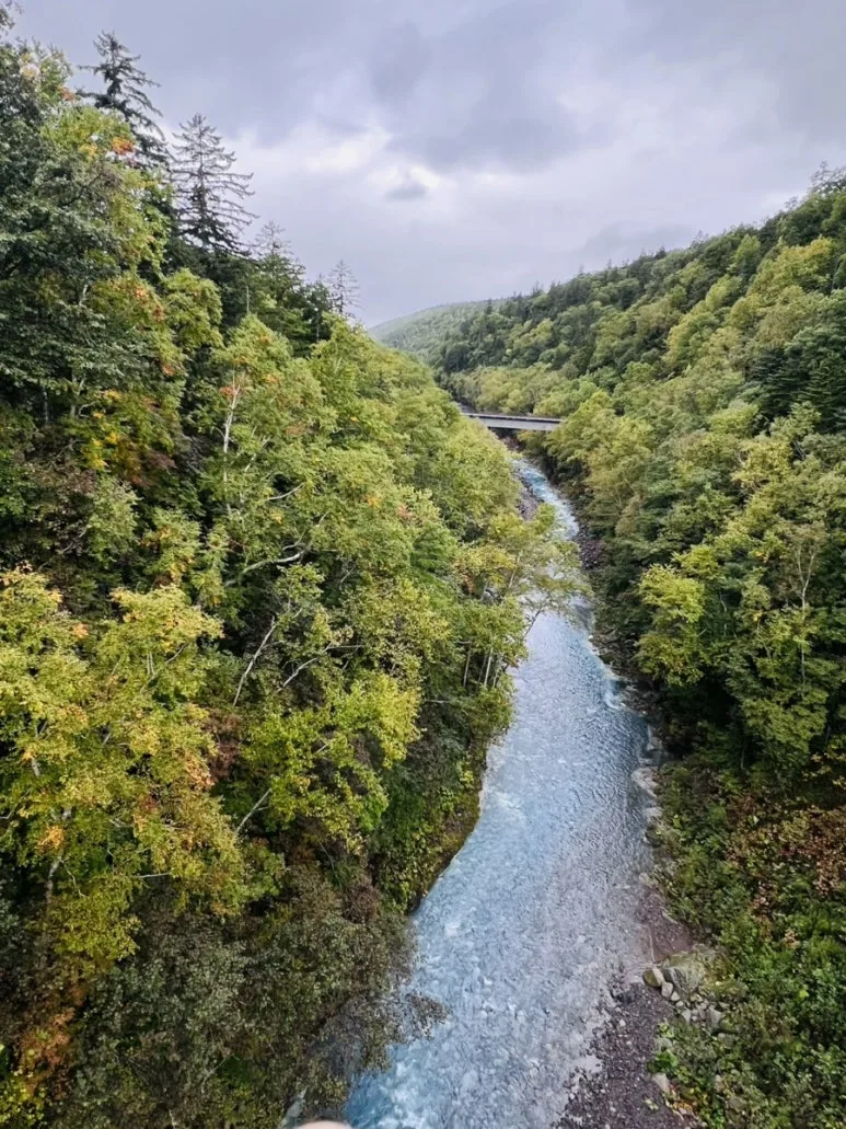 삿포로에서 아침에 출발하며 고속도로 휴게소의 라면을 먹은 뒤, 비에이에 도착했다. 비에이의 느낌이 가득한 시골길, 기찻길을 지나며 언제 다시 쏟아질지 모르는 소나기 덕에, 창밖에 우두두두 소리만 나도 움찔했더랬다. 하늘의 물과 땅의 물이 만나는 순간이 꼭 나쁘지만은 않았지만 말이다. 여하튼 마비된 것처럼 조용했던 순간을 지나 강 위에 다리로 걸어가니, 마구 쏟아지는 폭포소리가 들리기 시작했다. 그리고 점점 가까워지는 관광객들의 환호성까지. 계속해서 이어졌다.