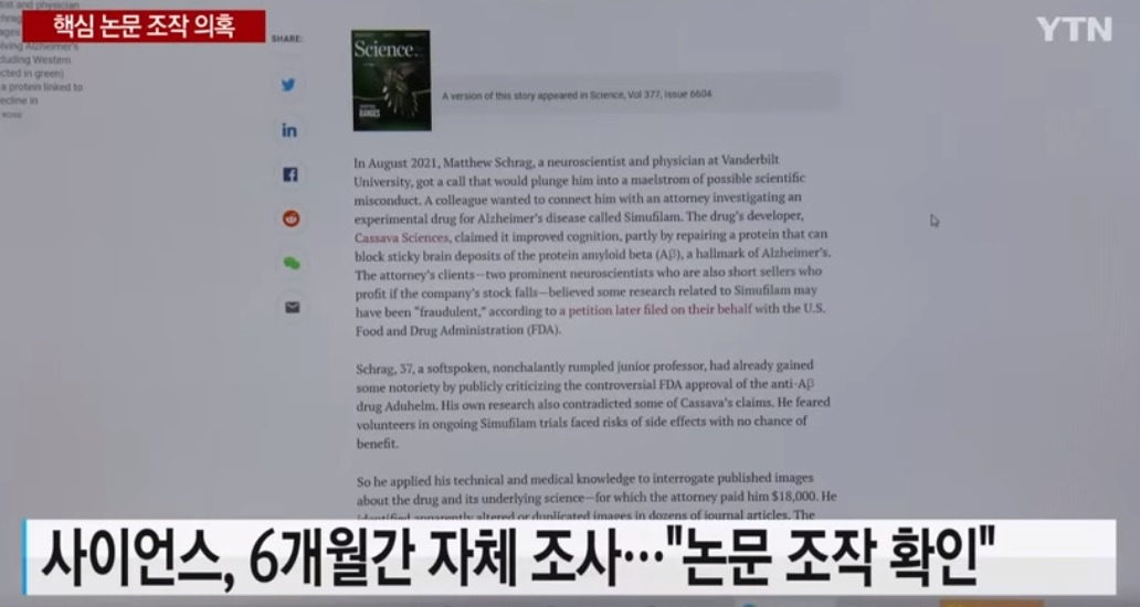 그러던 중 2021년 8월 밴더빌트 대학 슈레그(Schrag) 교수가 2006년 레스네 교수 논문은 조작되었다고 폭로하면서 주류 이론이던 ‘아밀로이드 가설’은 큰 타격을 받았다 [24]. 지금까지 제대로 된 치매 치료제가 나오지 못한 이유는 잘못된 가설 때문이라는 비판이 줄을 이었다 [25,26].