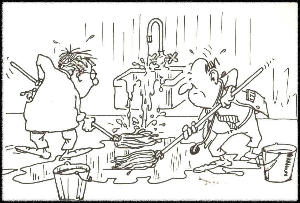 고혈압, 당뇨, 고지혈증 문제에 근본적인 접근을 하지 않고 약에 의존하는 것은, 윗 그림처럼 싱크대 위에서 물이 흐르는 수도꼭지는 잠그지 않고, 물이 넘쳐흐른 바닥만 열심히 청소하는 것처럼 헛된 일이다.