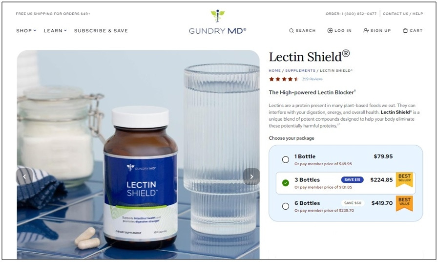 우리는 다양한 경로를 통해 많은 건강 정보를 얻는다. 정보의 객관성을 확보하려면 해당 정보를 유통시킨 저자가 그 정보를 통해 얻게 될 이익을 고려해야 한다. 이것을 지적하는 이유는 대부분의 건강정보는 글쓴이의 이익을 반영한 정보가 많기 때문이다. 닥터 건드리는 그의 홈피에 렉틴보호(Lectin shield)라는 고가의 보충제를 팔아 막대한 수익을 올리고 있다. 그의 홈피를 한번 들어가 보라. 수많은 약 선전에 놀랄 것이다 (아래사진) [30].