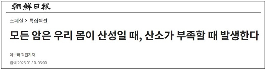 (Otto Warburg) 박사는 “몸에 산소가 장기간 부족해지면 정상세포 중 일부가 돌연변이를 일으켜 암세포가 된다”는 현상을 발견해 노벨의학상을 수상했다. 2019년 노벨의학상 수상자인 옥스퍼드대 피터 랫클리프(Peter Ratcliffe) 교수는 "몸에 산소가 부족하면 암세포가 잘 자라고, 산소가 충분하면 면역세포들이 활발해져 암세포 성장이 억제된다."고 했다 [11].