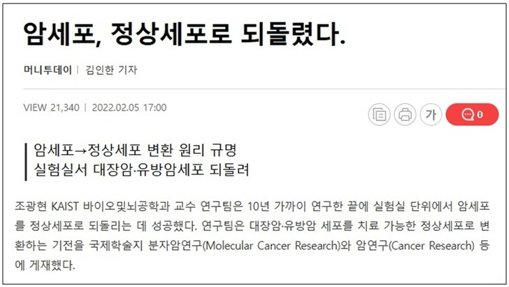 지난 글에 소개했듯이 중년 이후엔 대부분 미세 잠복암을 가지고 있는 'cancer without disease' 상태가 된다. (*상세 설명 -> https://brunch.co.kr/@mhsong21/67 )