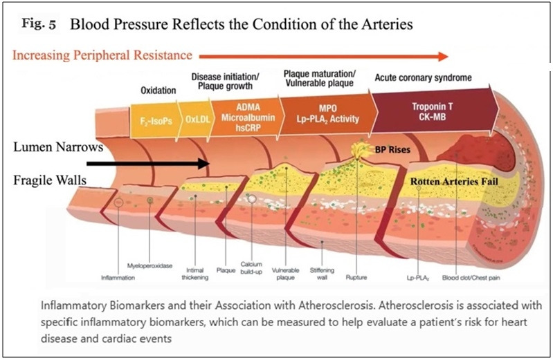 부자 나라 사람들은 고기·생선·우유·계란 등 동물성 식품을 많이 먹는다. 이런 식품에는 지방이 많기에 비만하게 되고, 살이 찌면 혈액 내 중성지방이 올라간다. 중성지방은 콜레스테롤과 함께 '죽상동맥경화증'을 만들어 혈관이 좁아지게 되고, 우리 몸은 '항상성' 기전에 따라 혈압을 올린다. 이것이 오래 지속되면 고혈압 환자가 되는 것이다.