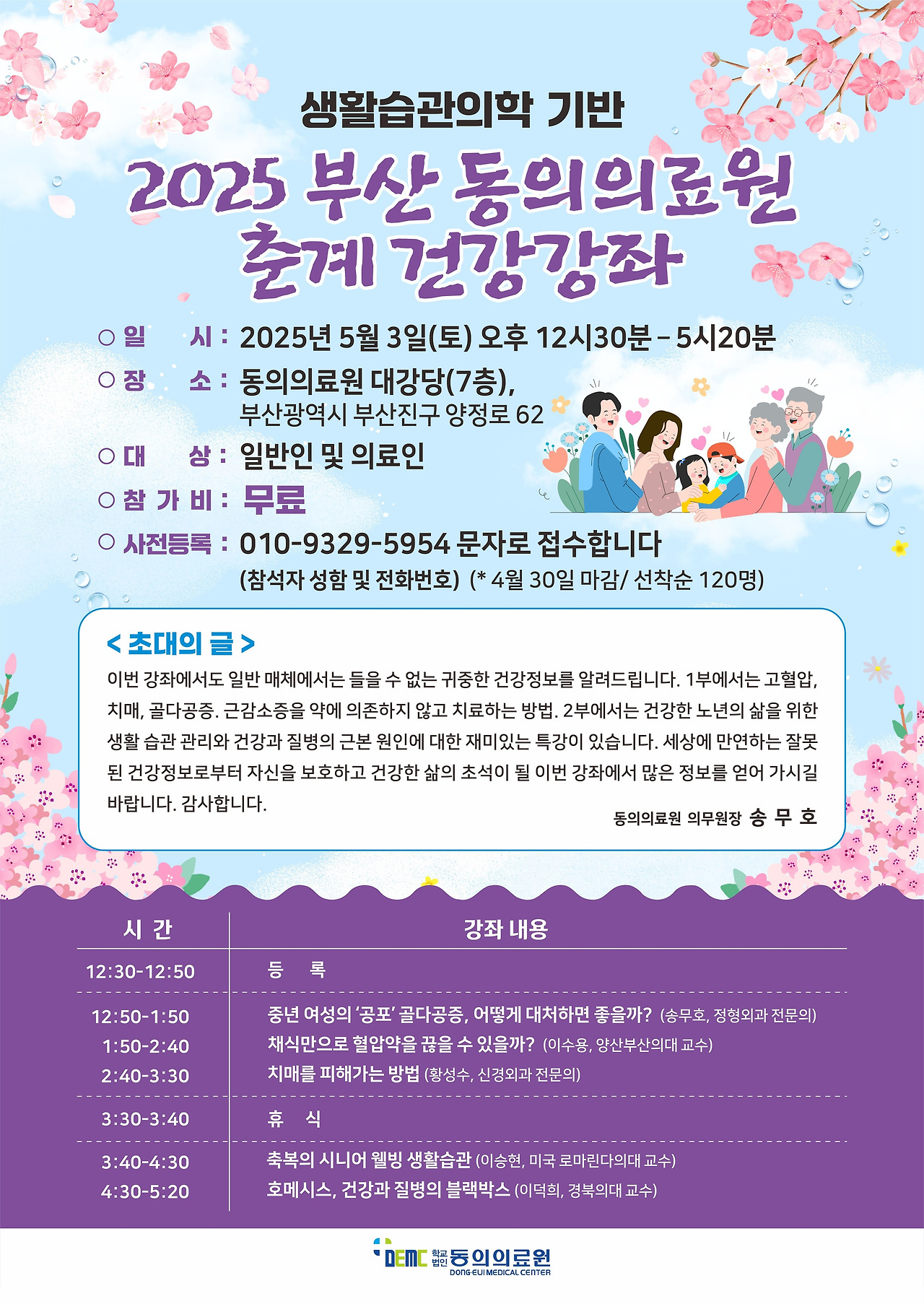 2025년 5월 3일(토) 부산 동의의료원 춘계 건강강좌를 개최합니다.