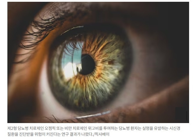이 병은 시신경에 혈액을 공급하는 동맥이 막히면서 시신경이 산소부족으로 손상돼 시력을 잃는 병으로 아직까지 치료제는 없다고 하니, 당뇨 환자들은 매우 조심해야 한다. 만약 이런 부작용이 생긴다면, 살 빼는 댓가치곤 너무 가혹한 건 아닐까?