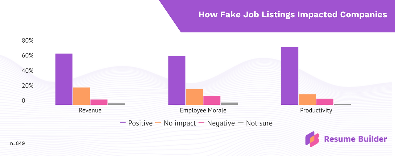 "미국의 구인 플랫폼인 레주메빌더닷컴이 지난 2024년 5월 채용 관리자 1641명을 대상으로 조사한 바에 따르면, 이들 중 40%가 전략적 목표 달성을 위해 가짜 채용 공고를 올렸습니다. 복수 응답을 받은 결과 67%는 외부 인재에게 개방적인 것처럼 보이게 하기 위해, 66%는 회사가 성장하는 것처럼 홍보하기 위해, 63%는 내부 직원들이 추가 채용으로 업무량이 줄어들 것이라 믿게 하기 위해, 62%는 직원들에게 자신들이 대체 가능한 존재임을 알리기 위해, 59%는 나중을 위해 이력서를 수집 및 보관할 목적으로..."