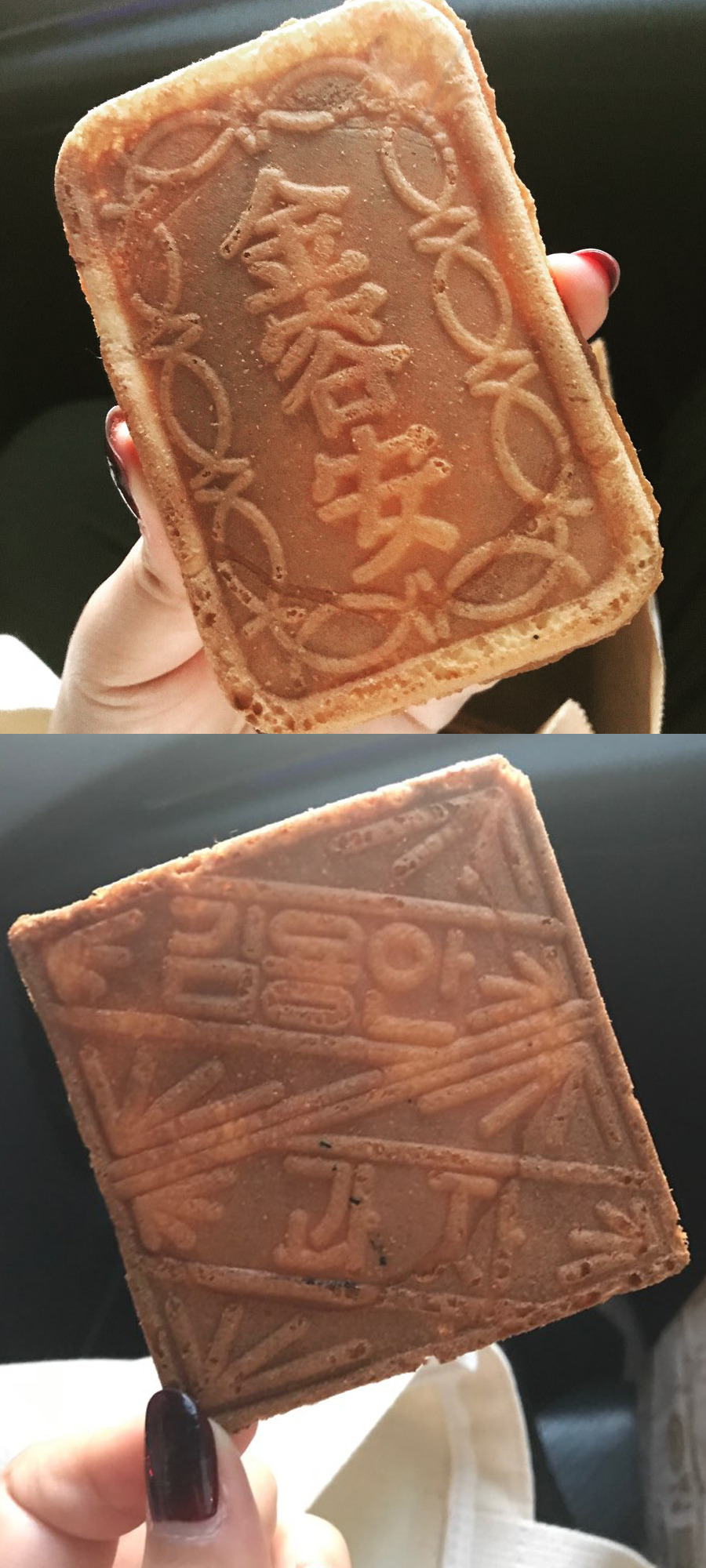 집에 도착하는 걸 기다리지 못하고 걸어가며 센베 봉투를 열었다. 바삭바삭하면서도 정겨운 옛 과자 맛이 입안에 퍼진다. 생강 맛으로 시작해서 고소한 깨 맛으로 넘어간다. 깨 맛 센베에 한자로 ‘김용안’이라 새겨져 있다. 음식점이나 빵집에서 자기 이름을 거는 일은 흔하다. 하지만 직접 음식에까지 쓰는 일은 거의 없지 않은가. 오히려 신기하기까지 하다.