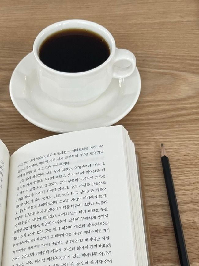 그은 문장이 무엇인지 묻고 싶은 마음을 꾹 참고 내 몫의 책을 읽어나갔다. 그 후 한 시간이 지났을 무렵, 나를 떠났던 연필이 돌아왔고 그 심의 모양새는 뭉툭했다. 떠 있던 봄 해가 서쪽으로 저물어가던 시간이었다. 뾰족했던 두 자루의 연필이 무디게 변한 모양새는 귀갓길의 발걸음을 가볍게 만들었다.