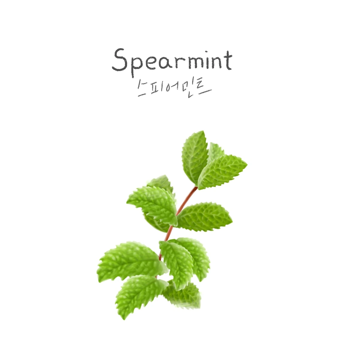 허브 이름인지는 몰랐던 스피어민트입니다. (껌 이름으로만 알고 있었어요) 그림을 그리려고 이미지를 찾다보니 레몬밤 잎과 유사하게 생긴 것 같아요. 줄기까지 같이 보면 조금 차이가 있네요.