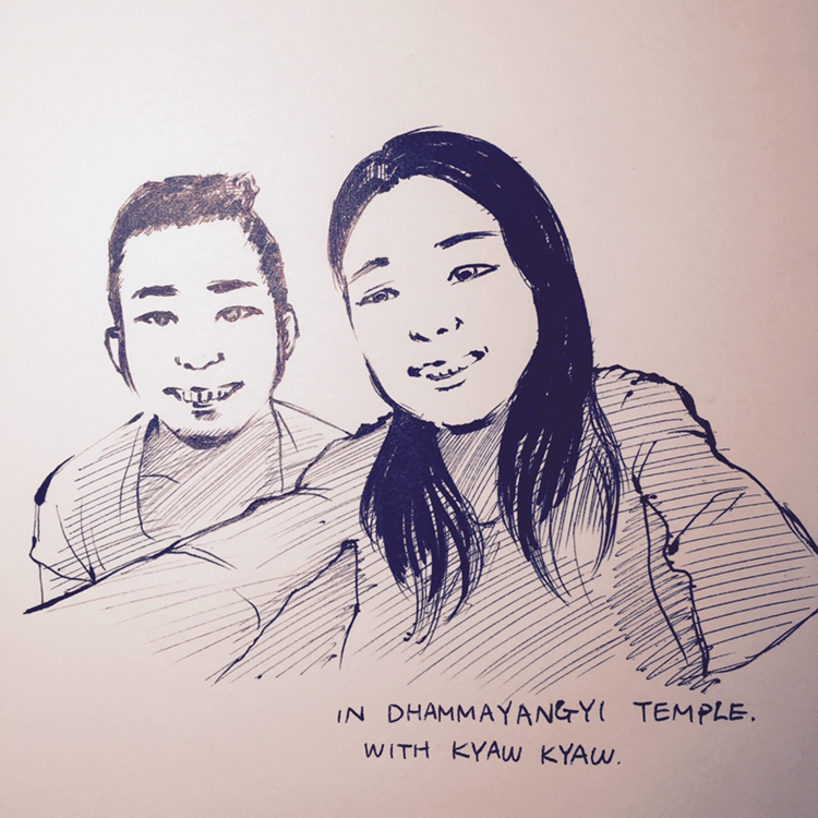 바간의 사원을 걷다보면 샌드페인팅 화가를 쉽게 만날 수 있다. 담마양지 사원에 있는 샌드페인팅 화가인 kyawkyaw와 한컷.