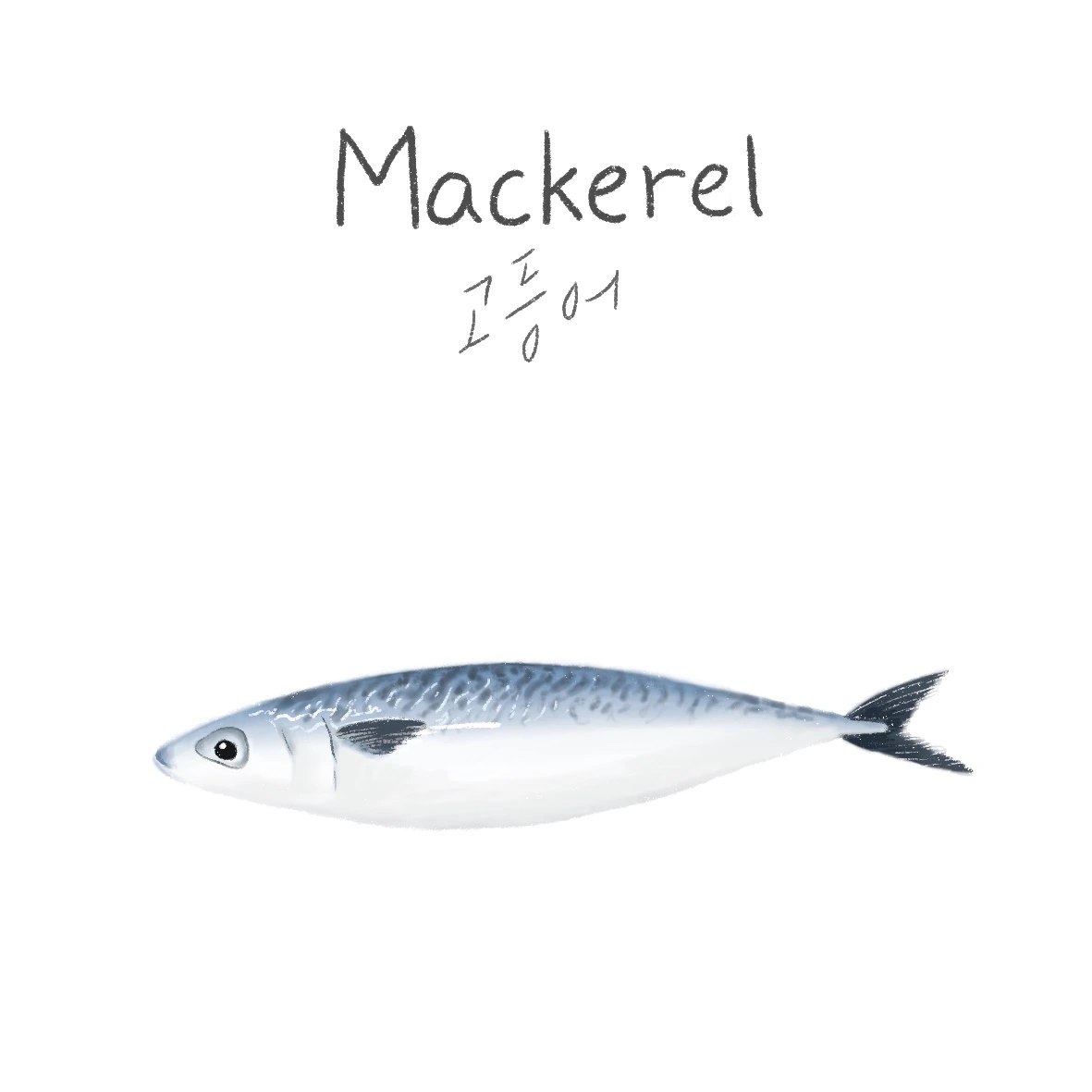 친숙한 생선인 고등어입니다. 하지만 영어 이름은 참 생소하네요. 태평양, 대서양, 인도양 등에 널리 분포하며, 한국에는 제주도를 거쳐 동해와 서해로 올라간다고 하는 것 같아요.