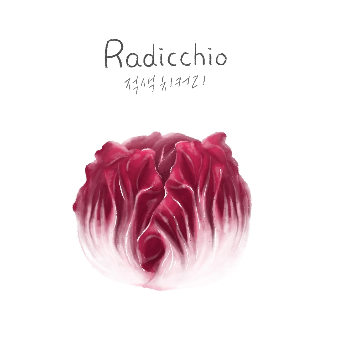 이탈리안 치커리라고도 불리는 적색 치커리입니다. 라디키오 라고 읽는 것 같네요. 생긴 모양은 배추같이 생겼어요 :-)