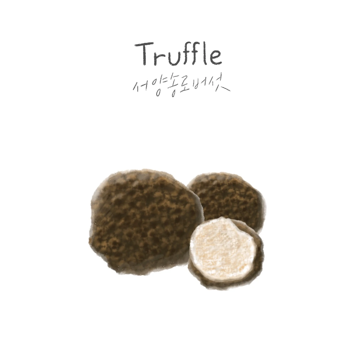 세계3대 진미로 꼽히는 트러플입니다. 떡갈나무 숲의 땅 속에서만 자라는 버섯으로, 모르는 사람이 보면 찾아내기 어렵다고 하네요. 동글동글한 초콜릿 같이 생겼네요.