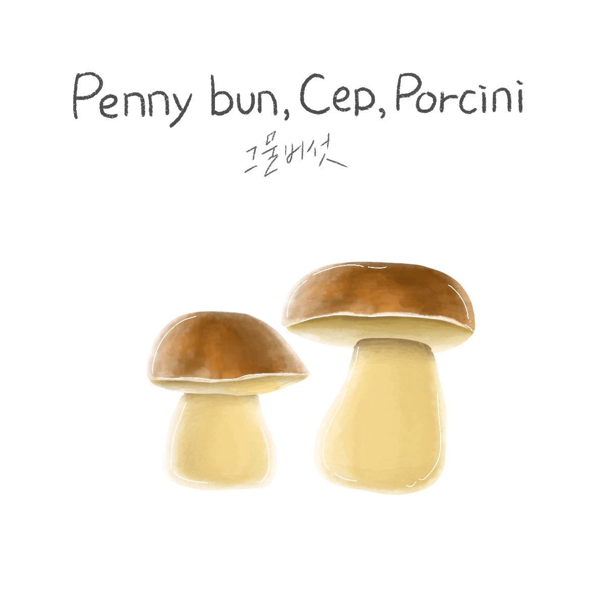 이탈리아 이름인 Porcini로 많이 알려진 그물버섯 입니다. 영어로는 Penny bun, cep 이라고도 하네요. 전세계적으로 분포하는 버섯이래요.