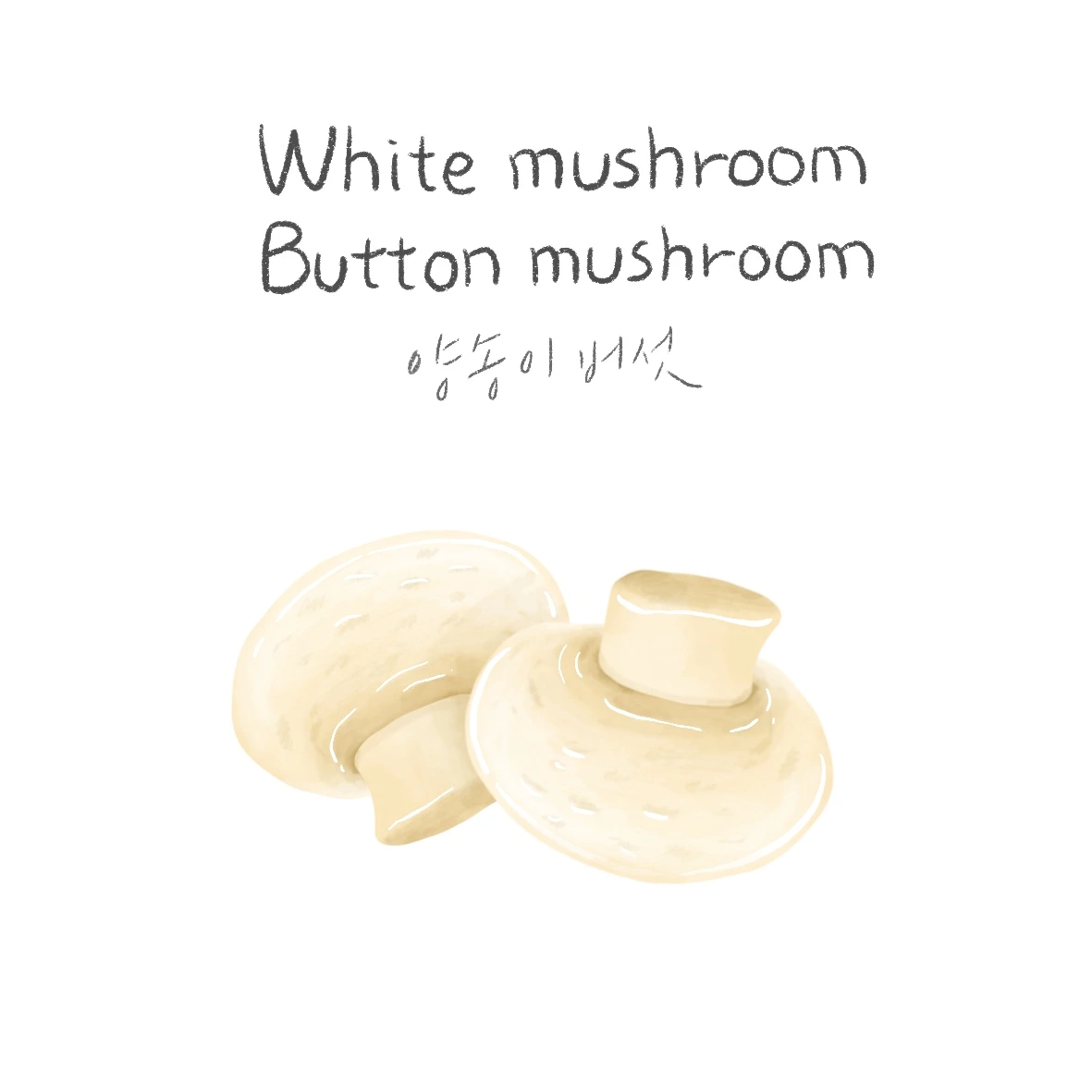 서양의 송이라는 뜻을 가진 양송이 버섯입니다. 여러모로 먹기에 좋은 버섯인 것 같아요. 고기를 먹을 때 곁들여 구워 먹기도 하고, 볶아 먹기도 좋은 버섯이지요. 동그란 부분에 치즈 등의 소를 채워 넣어 요리해 먹기도 하구요.