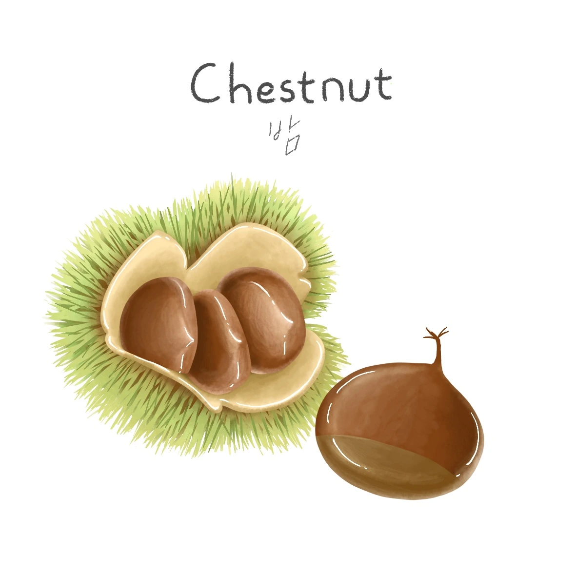 밤은 우리나라뿐 아니라 외국에서도 생산되는데, 전 세계 밤 생산량의 22%가 한국에서 수확된다고 해요. 한국밤은 육질과 맛에 있어서도 우수한 편이라고 합니다.