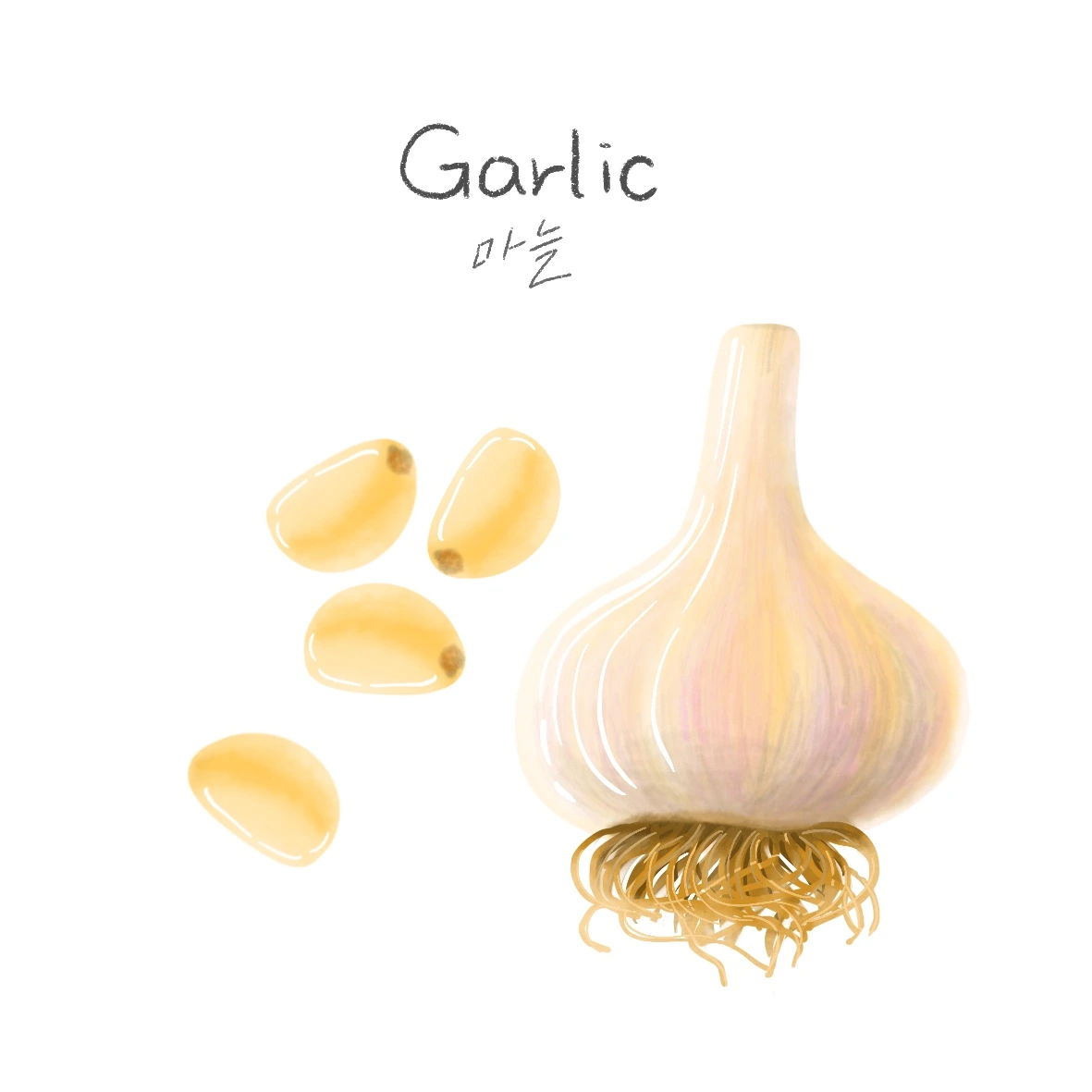 마늘을 통해 섭취할 수 있는 알리신 성분은 살균, 항균작용을 하기 때문에 식중독균을 죽이고, 헬리코박터 파이로리균도 죽인다고 해요. 또한 소화, 면역력, 콜레스테롤 수치를 낮추는 데에도 도움이 된다고 해요.