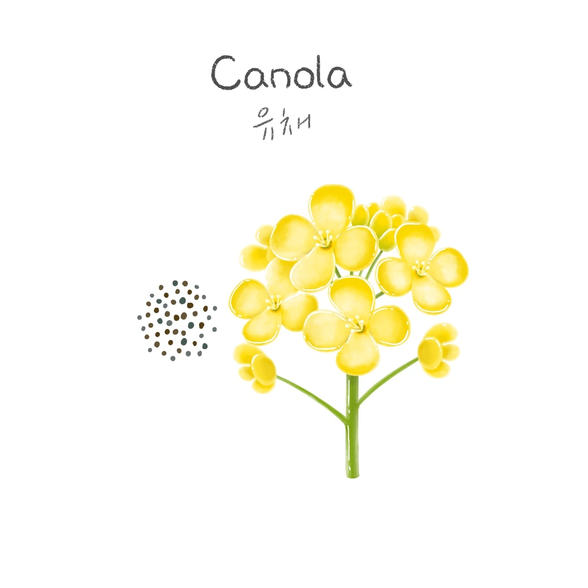 이름 의미에 대해 덧붙이면, 자연 그대로의 유채 오일에는 에루스산이라는 성분이 함유되어 있는데, 과다 섭취시 건강에 해가 된다고 해요. 그래서 캐나다에서 개량을 거쳐 에루스산이 거의 없는 Canola 품종을 개발하였고, 그것이 지금의 카놀라유가 된 것이지요.