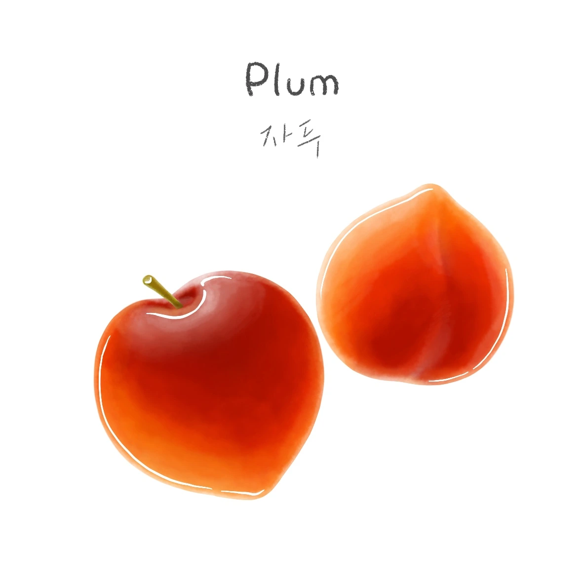 새콤한 여름과일인 자두입니다. 자두는 우리나라말로 ‘오얏’이라고도 한대요. 언뜻 보면 천도복숭아와도 비슷하게 생겼지만, 크기가 더 작은 편이에요.