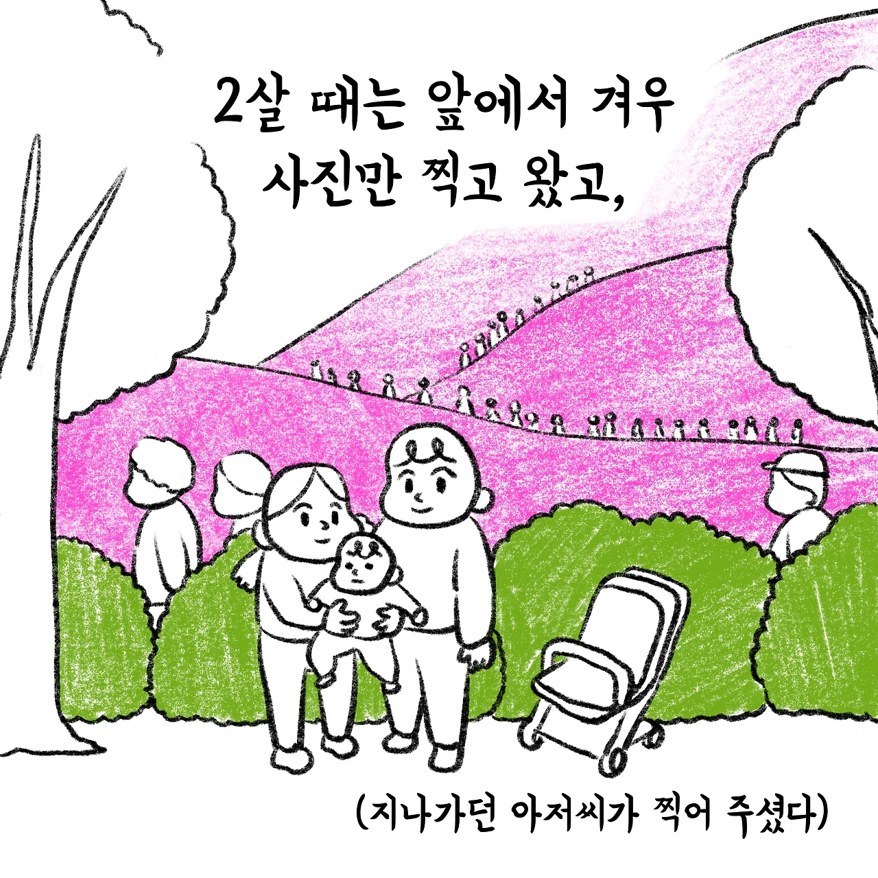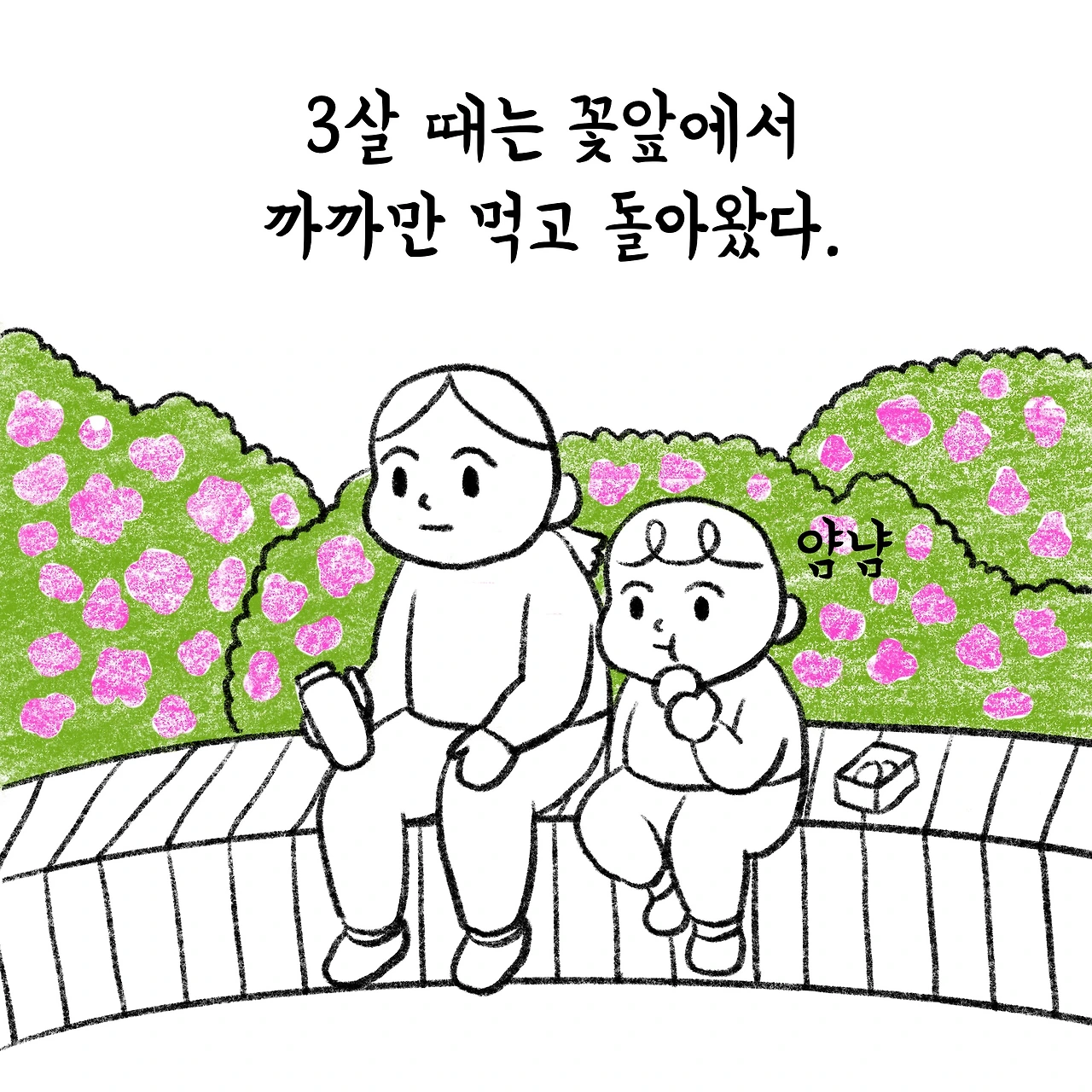 3살 때는 꽃 앞에서 까까만 먹고 돌아왔다.