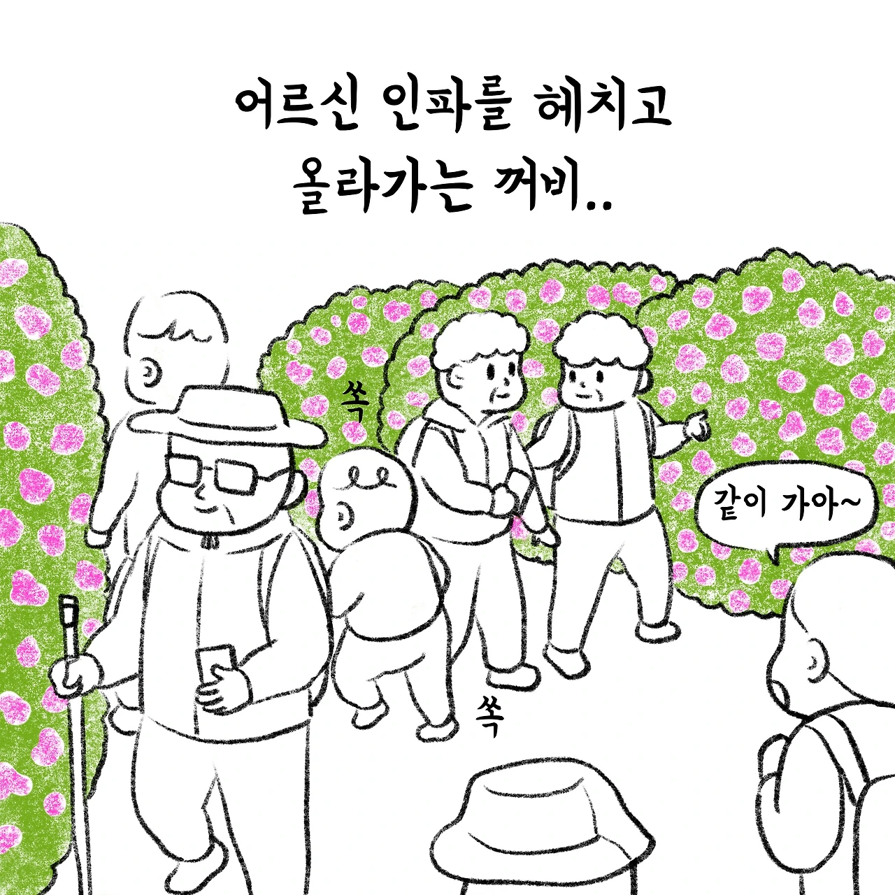 어르신 인파를 헤치고 올라가는 꺼비..