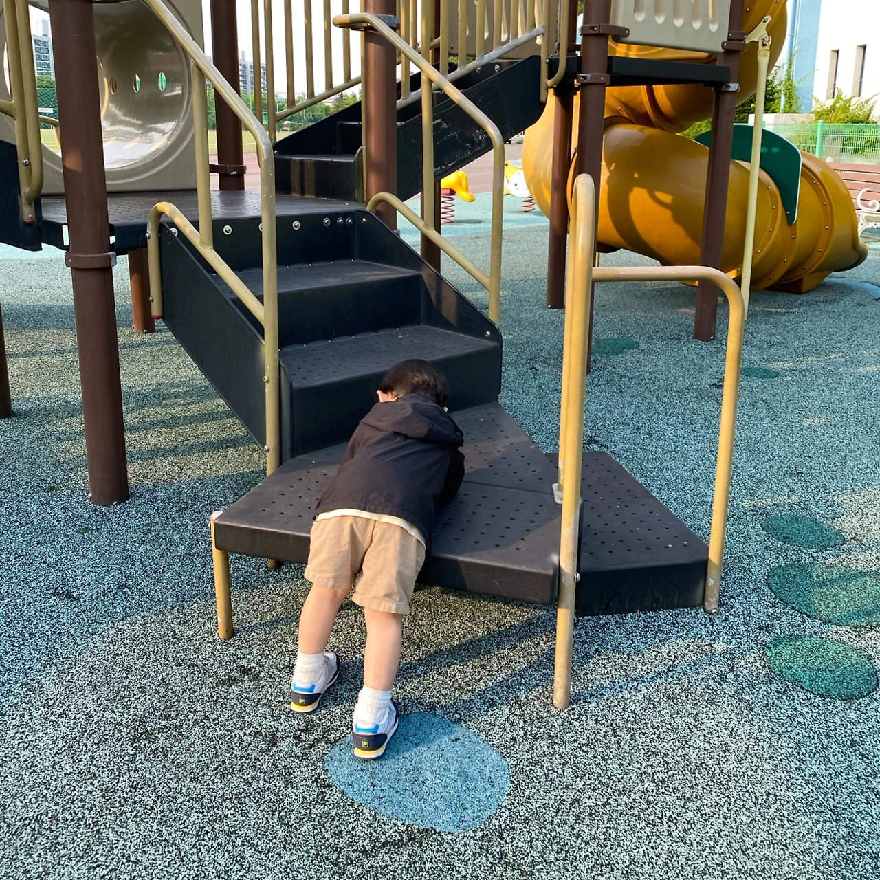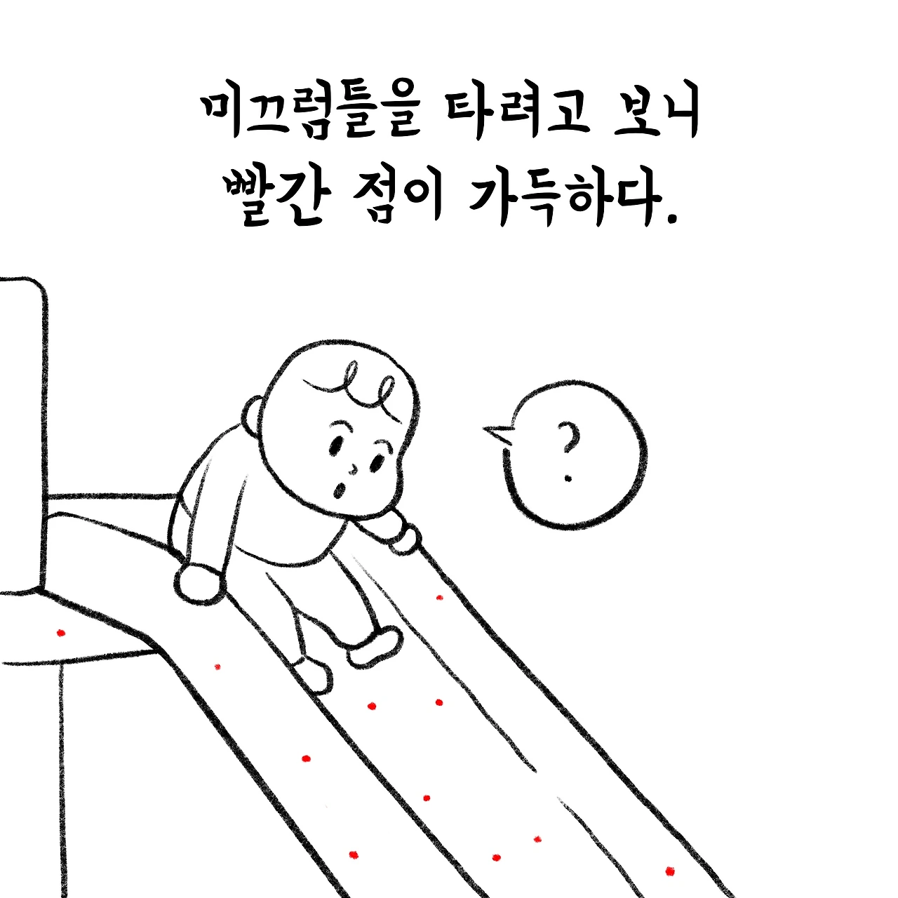 미끄럼틀을 타려고 보니 빨간 점이 가득하다.