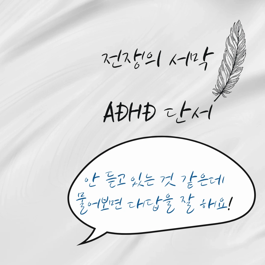 지금 우리 아이는 학교 담임선생님이 ADHD라는 짐작조차 못 하신다. 작년 담임 선생님은 걱정할 게 없다고 수시 상담 때 왜 오셨나 의아해하셨다.