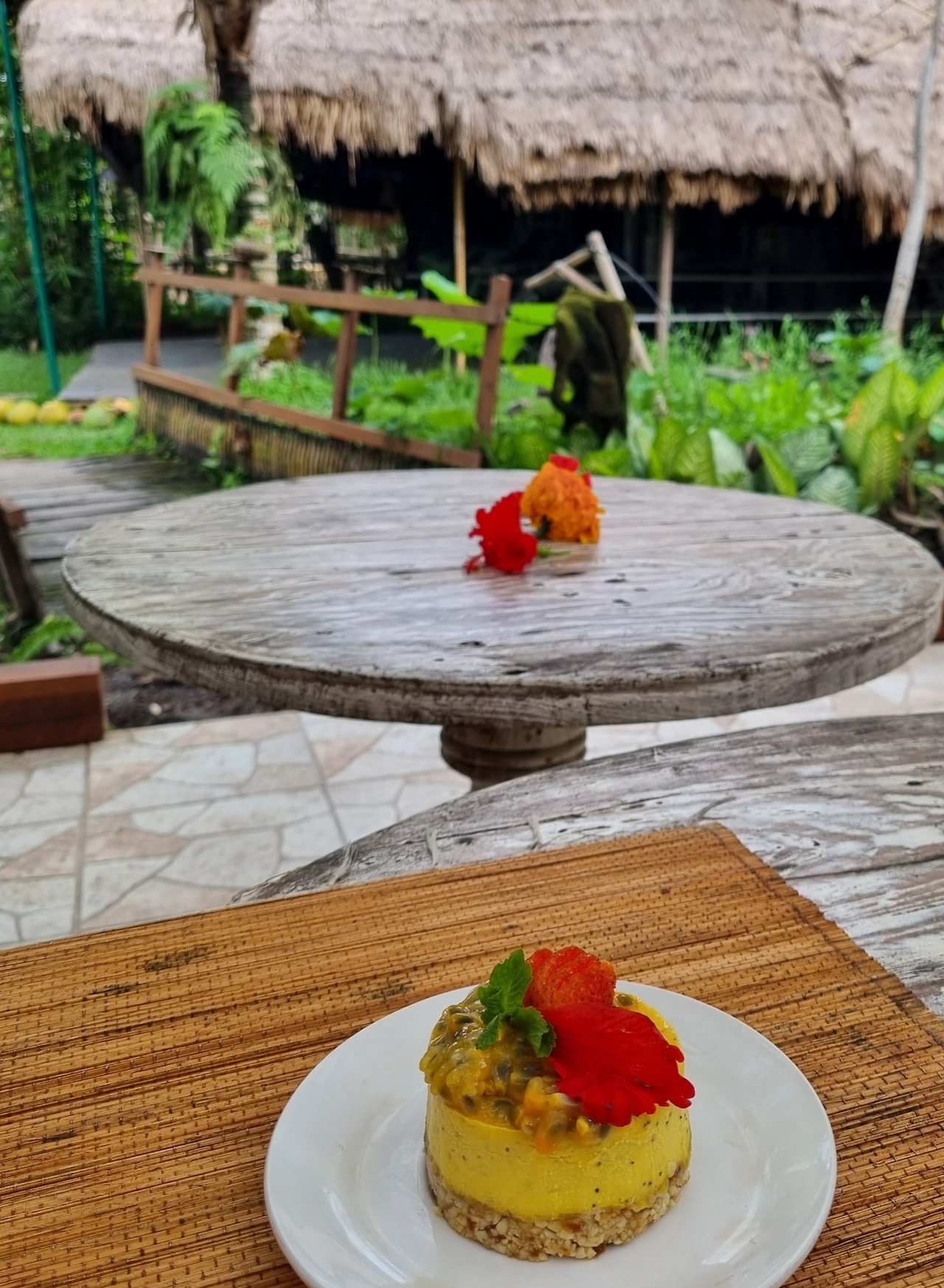 숙소에서 직접 기르는 재료들로 운영하는 레스토랑인 Swasti Beloved Café에서 먹은 첫끼는 망고리사 치즈케이크였다. 이토록 예쁜 치즈 케이크라니! 눈으로 먼저 먹는 포만감 있는 디저트 한 끼였다.