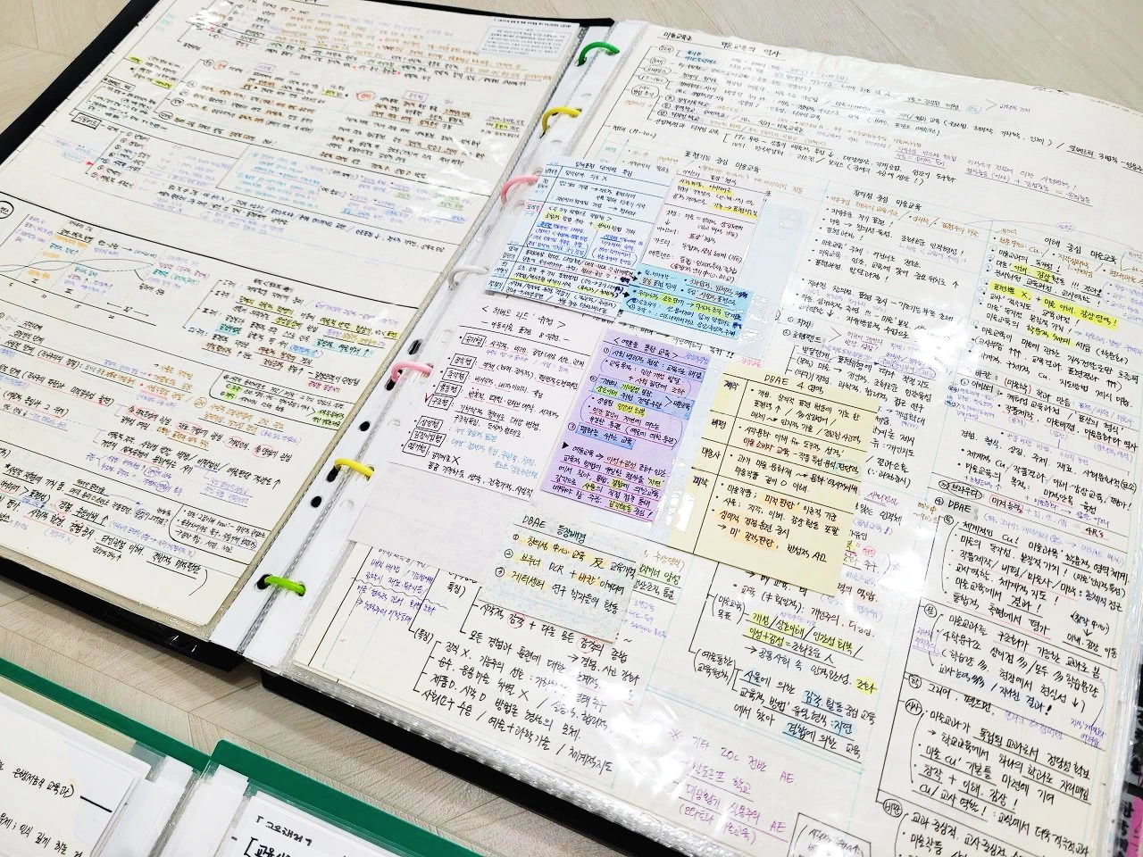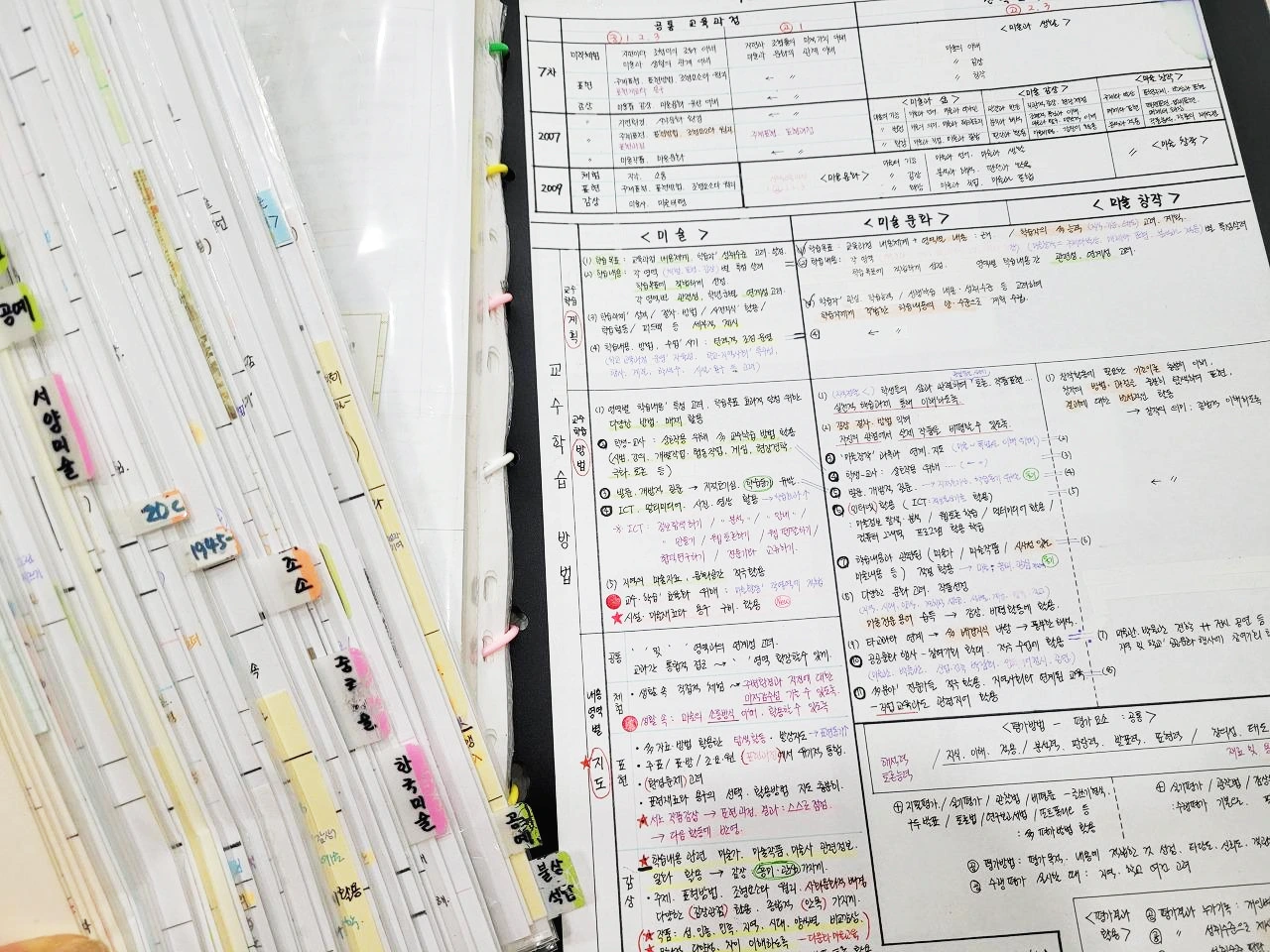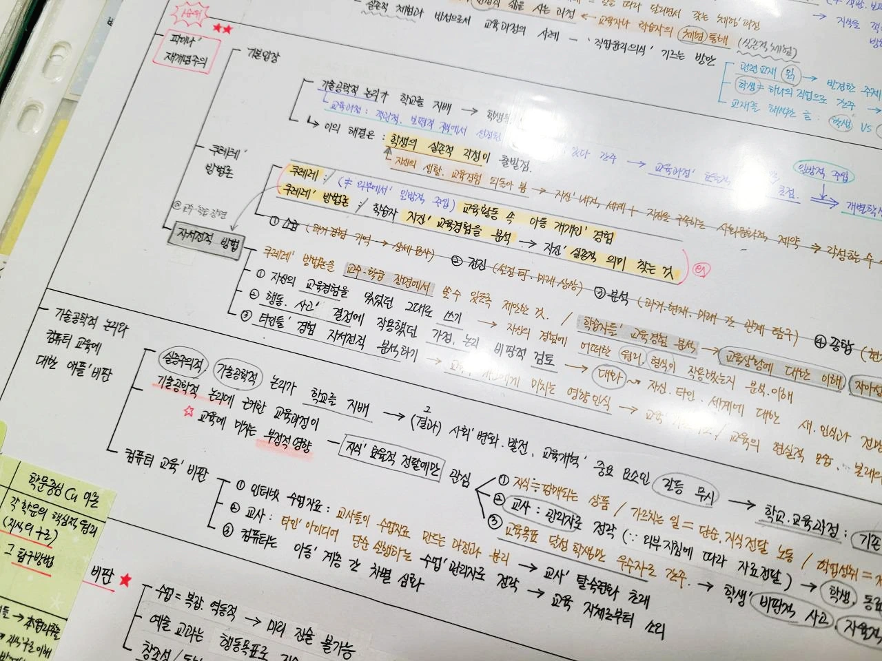 임용시험은 논술시험이라 이론의 징검다리가 되어줄 단어 연결이 핵심이었다. 색을 달리 해서 빠르게 볼 때는 검은색, 꼼꼼히 볼 때는 황토색의 부연설명까지 보도록 계획적 필기를 했다.