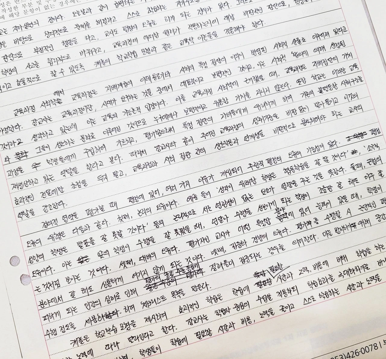 매일의 루틴이었던 교육학과 전공 논술시험 모의 답안지