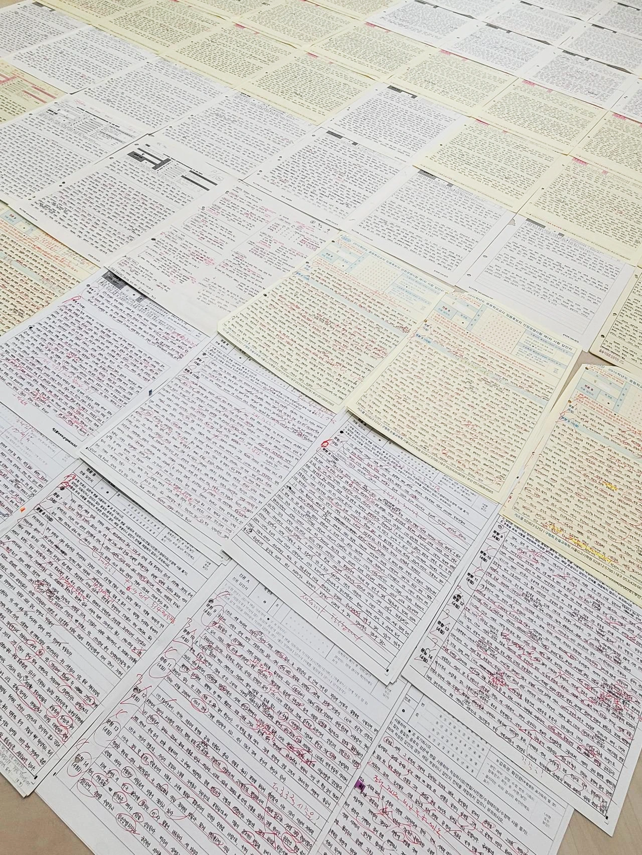 매일 아침 실전처럼 논술시험 모의 연습을 했던 나의 답안들. B4지로 1000여 장이었다.