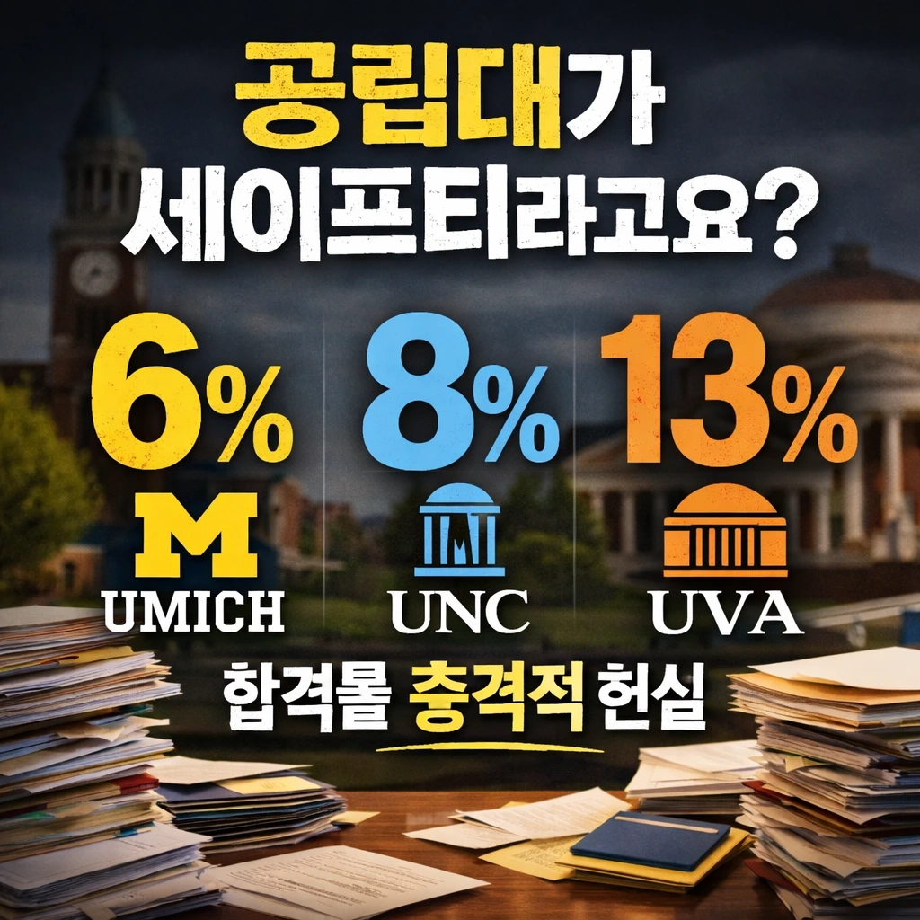 미시간대(UMich), 버지니아대(UVA), 노스캐롤라이나대(UNC)를 아이들 리스트에 올릴 때 많은 부모들이 착각을 한다. '탑 사립이 너무 어려우니까 퍼블릭을 세이프티로 넣어야지.' 하지만 세이프티? 이제 그 말은 이 학교들 앞에서 쓸 수 없다. 이 세 곳은 지금 미국 입시 역사상 가장 치열한 경쟁을 치르고 있다.