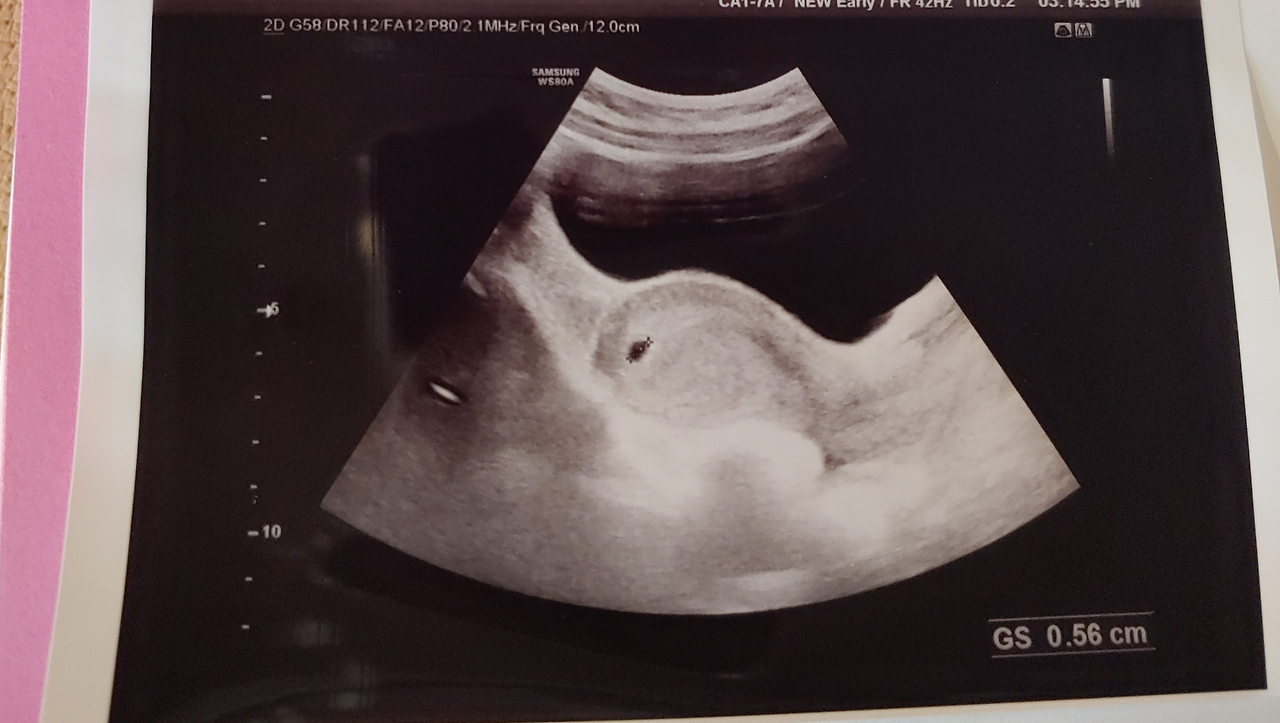 "아기집이 생겼네요. 5cm 정도고 다음 주 중에 오시면 심장소리도 들을 수수 있어요. 주수는 착상 일부터 기 때문에, 2주는 그냥 세고 들어가요. 지금 5주 정도 되셨네요."