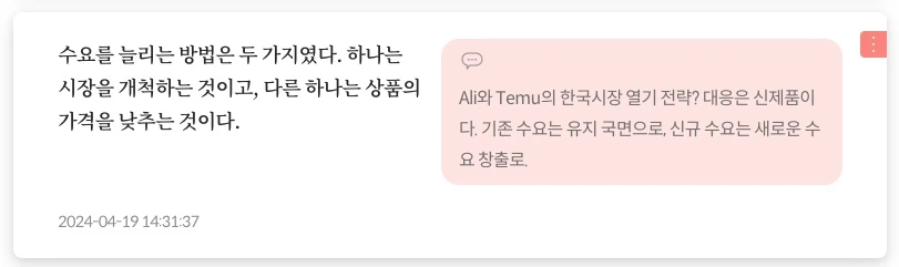 두 번째는, 신제품 개발을 통해 소비 방향을 전환하는 것. 이는 자체 신제품 개발보다, 협력기업과의 파트너십을 통해 구현하는 것이 더 바람직. 대신, 파트너와의 수익 분배에 신경 쓸 것. 파트너가 적으로 변하는 순간이 바로 수익 분배.