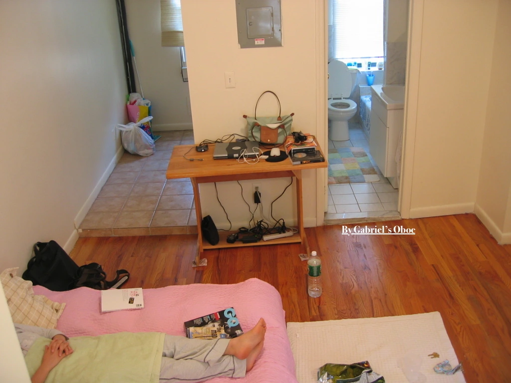 뉴욕에서 장기간 거주하려니 당연히 호텔이 아닌 ‘거주지’가 필요했다. 뉴욕의 대학생 중에 여름 방학 동안 귀국을 하며 비어있는 공간을 다른 사람에게 세를 주는 기회가 있었다. 그곳에 한 달 $120을 내고 거주했다. 다행인 것은 유틸리티 비용이 포함됐다는 점이다. 즉, 전기, 수도 등의 비용이 $1,200(한화 약 120만 원 정도)에 모두 포함되어 있었다, 얼마를 쓰던 간에. 덕분에 시끄러운 에어콘을 집에 있는 동안 계속 켜둘 수 있었다. 탕에 물을 가득 담고 목욕도 할 수 있었다. 이렇게 나의 분가의 꿈은 이루어졌다. 더구나 결혼한 지 2년 정도 된 아직은 신혼이었다. 기대가 꽃을 피웠다. 하지만 나의 부푼 기대에 살짝 찬물을 끼얹은 일이 있었다. 새롭게 세를 주면서 내부 페인트칠을 하게 됐는데, 그것이 우리가 도착할 시간까지 완료되지 않았다. 그래서 우리의 첫날은 여관행이었다. 세인트 마크 거리에 있는 하룻밤 $180의 지저분한 방. 강아지만큼 큰 뉴욕 쥐가 나오지 않을까 우려됐다.
