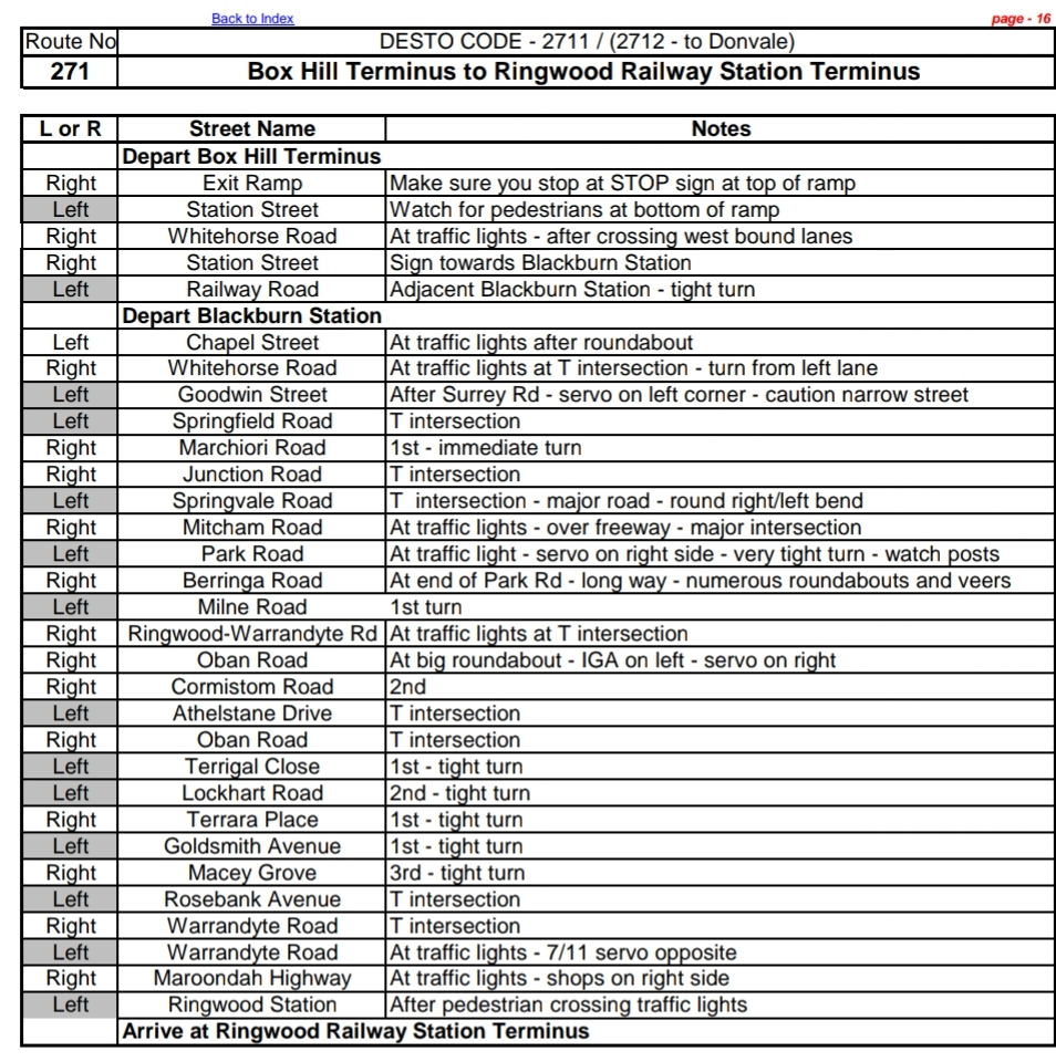 새로운 버스 노선을 부여받으면 대부분의 신참 기사들은 Lefts & Rights를 찾게 된다. 어느 길에서 좌회전을 하고, 어느 길에서 우회전을 하는지 정리해둔 종이이다. 지도를 보면 편하겠다 하지만, 운전석에서 페이지 넘겨가며 지도를 들여다본다는 것이 쉽지는 않다. 또, 어떤 전자제품도 소지하면 안 된다는 운행규칙이 있어 전화기나 내비게이션을 본다는 것도 불가능하다. 그런 면에서 이 좌, 우회전을 적어둔 종이 한장은 신참 기사들에게는 성경과 다름이 없다. 친절하게도 코너가 급하다고 주의하라고 적어놓기도 하고, 참고 삼을 수 있는 지형지물도 나름 기록이 되어있다. 이 종이 한 장이면 그 노선은 어느 정도 대처하고도 남는 것이다.