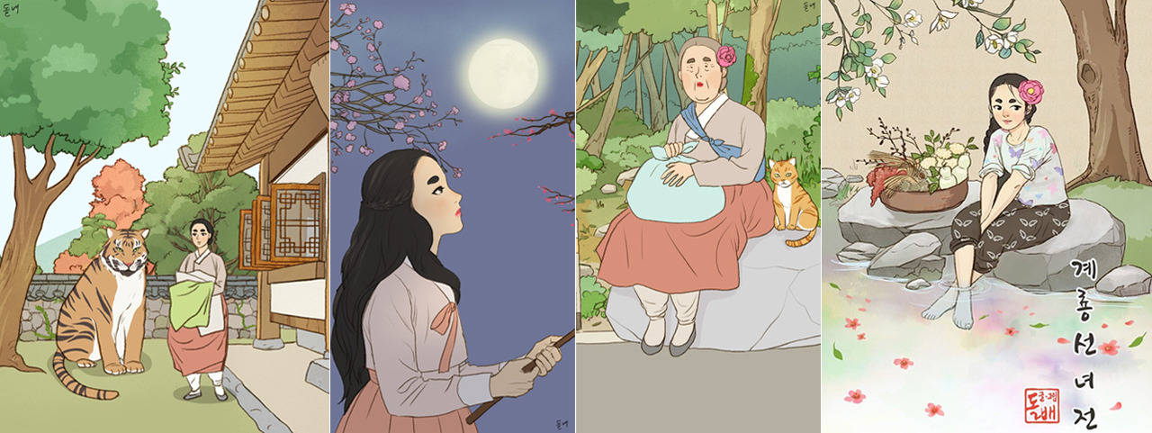 가장 좋아하는 커피 . 계룡산 . 전래동화 . 이 세가지를 모두 충족시켜 준 돌배 작가의 < 계룡선녀전 > . 인간계에 잠시 내려와 계룡산에서 목욕하던 중 날개옷을 잃어버린 699살의 선옥남 선녀가 커피의 신 칼디에게 사사받은 바리스타 기술을 살려 계룡산에 [ 선녀다방 ] 을 열었다 . 자신만의 '부렌딩' 커피를 정성껏 달여 손님에게 내어주며 이야기는 시작 된다 . 보통 사람들의 눈에는 그저 할머니로 보이지만 함께 선계에 있었던 선인들의 환생인 정교수와 김김이에겐 젊고 아름다운 선녀의 모습이 투영되고 , 그녀의 커피를 마시는 모든 사람들에게 엄청난 효험을 준다 . 선옥남 선녀가 준비한 커피 메뉴는 아래의 다섯가지 . 정감있고 아름다운 그림은 보너스 .