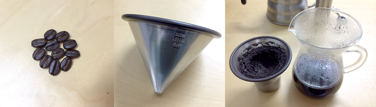 나는 기꺼이 , 한 잔의 커피를 위해 세계 곳곳의 다양한 생두를 고집스럽게도 집에서 직접 볶는다 . 볶은원두는 핸드드립 , 푸어오버 , 프레스 , 모카포트 , 사이폰 , 워터드립 , 더치 , 콜드브루 등 다양한 방식으로 추출한다 . 수행자처럼 정성어린 동작과 맛있어지라는 주문을 외우며 자신의 방법으로 완성한 커피의 첫 모금을 만끽하기 위해 카페인 중독자들은 수고로운 일상을 즐긴다 . 하지만 다른 누구도 아닌 ' 나 ' 를 대접한다는 목표 혹은 기분을 깨닫고 커피를 완성하는 건 뜻밖에도 처음이라 너무 생경해 마음 한 켠이 간질간질 했다 . 밤 11시를 달려가고 있으므로 안전한 디카페인 커피를 마시기로 결정 , 기왕 마시는 거 왕사발로 드링킹하고자 공방에서 특별주문한 컵과 받침을 꺼내본다 . 추출도구는 킨토의 슬로우커피로 정했다 . 지금 내게 필요한 건 느긋함이니까 . 메탈 필터에 미세망점이 뿅뿅 뚫려 미분도 추출되지만 역시 농후한 맛(=바디)을 선사하는 도구다 .