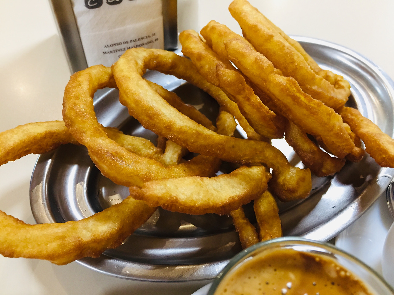 되도록 짧게 요약하자면, 우리에게 친숙한 ‘추로(Churro)’는 밀가루, 소금, 물 또는 우유로 반죽한 다음 별모양 짜개를 이용해 반죽을 똑똑 떼어내 기름 솥에 튀겨내는 스페인 최고의 국민간식이다. 한국에 떡볶이가 있다면 스페인엔 추로가 있다. 특히 마드리드 사람들은 추로보다 ‘뽀라(Porra)’를 즐겨 먹는데, 밀가루, 소금, 물과 베이킹파우더를 첨가해 반죽하는 것이 추로와 다른 점이다. 일면 우리네 꽈배기와 유사한 느낌이지만 꽈배기는 튀김기에 넣기 전 반죽을 손으로 둥글려 공기층을 뺀다. 뽀라는 공기층이 곧 생명! 쫀득하고 짭짤하고 바삭거리는 질감 사이로 기름이 쭉쭉 배어 나오는 그것을 나는 정말이지 사랑한다. 그래서 뽀라는 추로처럼 가늘고 길게 뽑기보다는 각 전문점(추레리아, Churerria)마다 모양이나 크기가 다르다. 대체로 뽀라는 추로보다 2배쯤 되는 굵기를 가지고 있다.