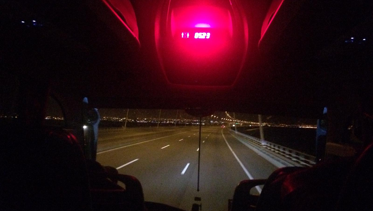 예약한 좌석은 버스기사 대각선 뒤, 3번 좌석이었는데 중동 커플이 차지하고 있었다. 분명 깨어 있었는데, 갑자기 숙면 중. 당황해서 기사님께 예약증을 보이며 어필해봤지만 ‘리브레, 리브레!!(자유석)’이라는 말만 되풀이하며 나를 뒤로 보내버렸다. 시각은 밤 12시 35분. 원래 11시 59분 출발 예정이었던 버스가 늦게 와서 뒷 스케줄도 밀린 상황. 앞으로 장장 8~9시간을 이 상태로 가야 하는데 멀미도 걱정되지만 생리까지 터진 오늘 밤, 나는 최악의 상황과 컨디션으로 버스에 올랐다. 그리고 화장실 부스 앞자리 당첨. 엄마...