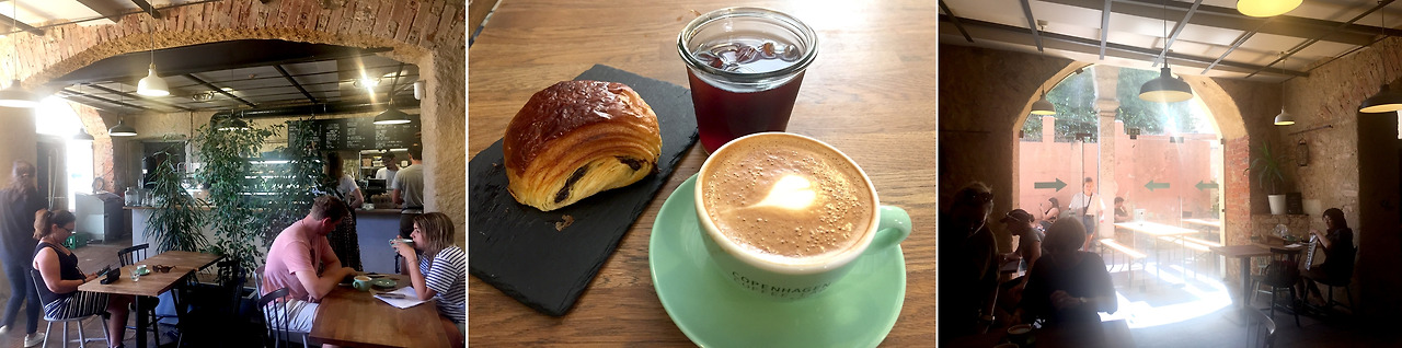 트램이 아슬아슬 지나는 곳에 위치한 ‘코펜하겐 커피랩’. 리스본에 있는 코펜하겐이라니, 비탈에 지어진 카페라 입구는 2층이고 실내는 1층인 구조도 재미있고 신박했다. 그리고 커피만 마셔보려 했는데, 데니쉬 롤이 딱! 빵님이 왜 이렇게 탐스럽게 보이는 거죠? 그래, 핸드폰 충전도 하고, 화장실도 가고, 느긋하게 시간을 보내는 것도 좋을 것 같군. 자기 합리화에 성공한 미쇼씨는 결국 폭풍 흡입 성공!